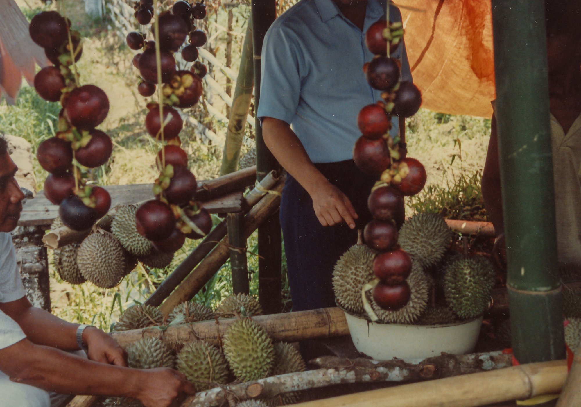Sharp eyes! My picture had more potential segues than I realized! 😀there is also a tomato in that pic, a fruit, so here are some tropical fruits, Indonesia, 1992