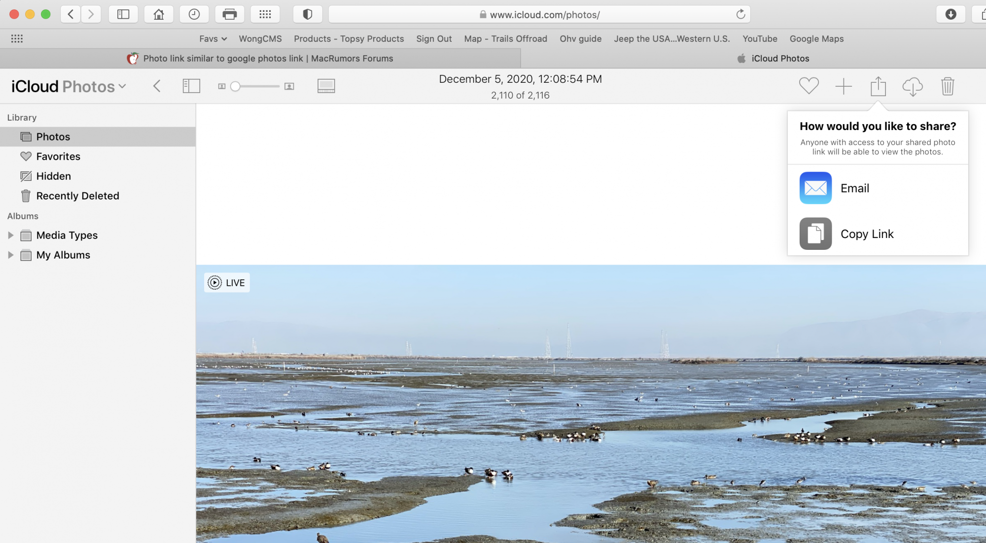 I guess is iMac related if not my apologies. I know on iOS is option to create an iCloud photo link similar to google photos link where recipient clicks on link to open the photo. On the iMac Photos app is there an option for doing same other than having to create a shared album? Thanks.