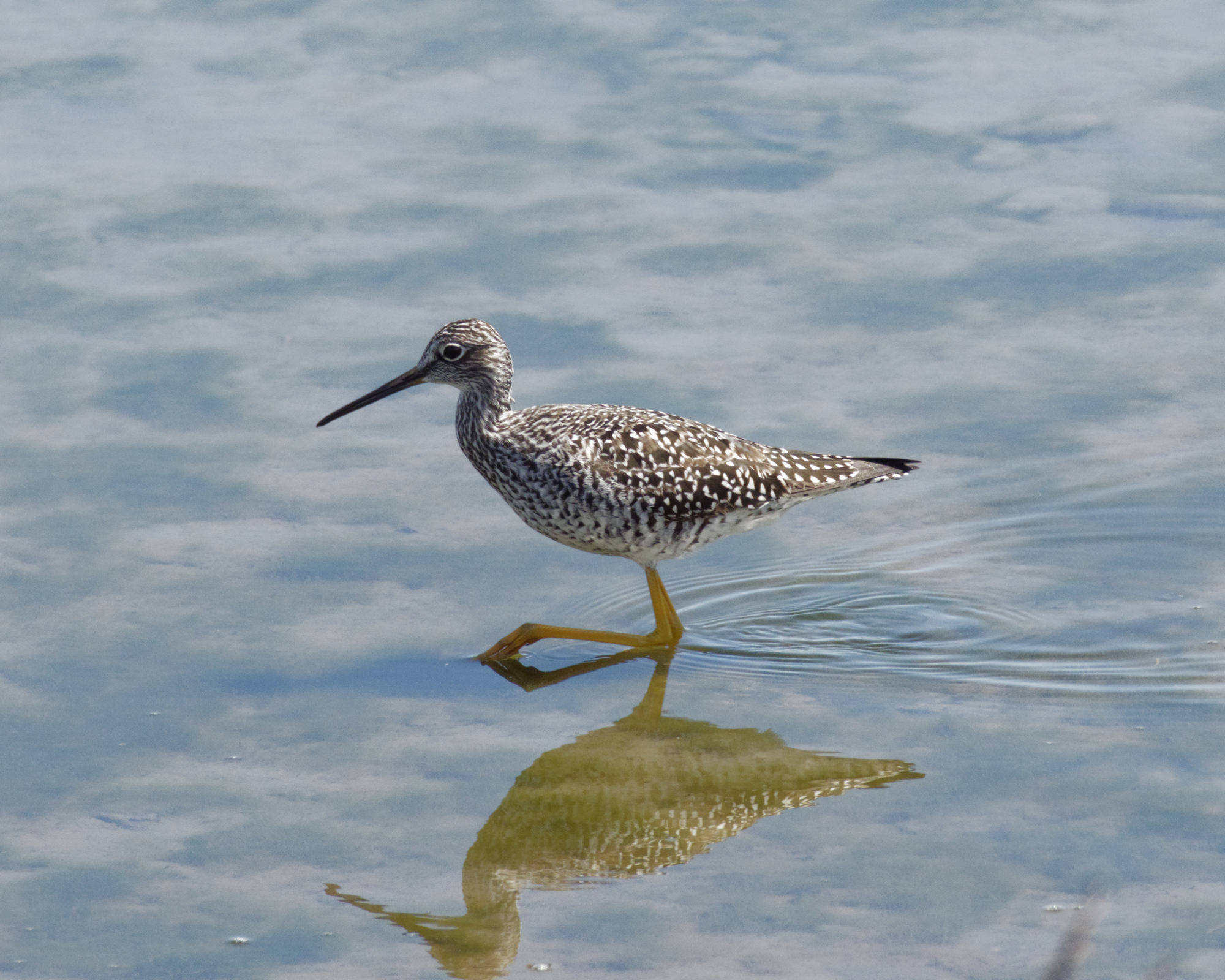 Did some research and it seems to be a 'Greater Yellowlegs 'It's a member of the Sandpiper family. Common on the shores around here in Florida.