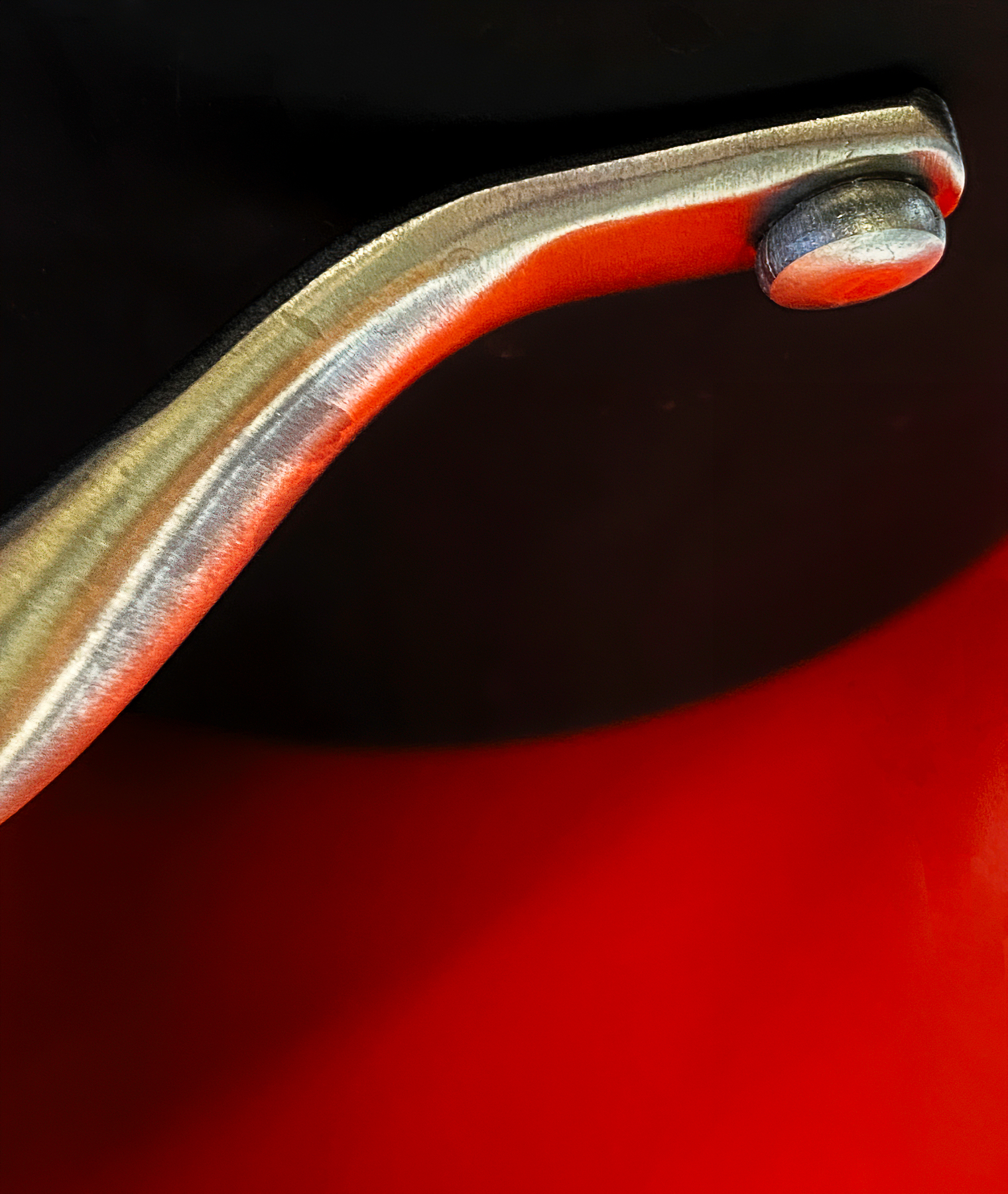 I’ll post one of mine sometime Friday when my machine has finished restoring.In post-processing I deepened the black of the pot for more intensity and contrast; the pot is more greyish-black than solid black. I was struck by how part of the handle picked up and reflected the orange color of the base and I liked the angle and shape of it, too, adding to the impact.