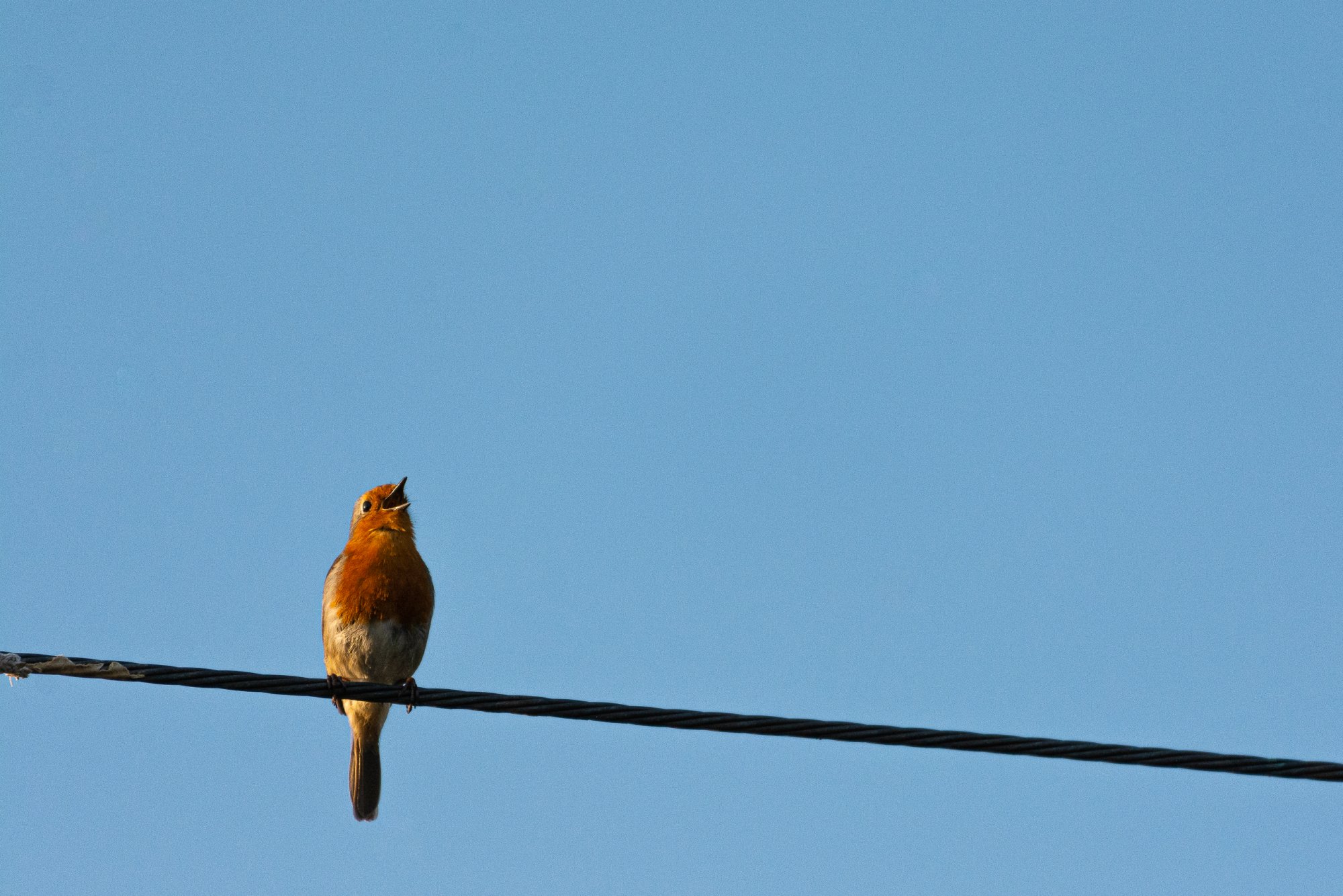 Is the European robin as bold as the American variety? Ours you can usually walk right up to before they hop away. I’ve gotten within a few feet of them before.First time having my camera out since we moved at the start of December. Robin was giving us a lovely evening song, so thought I'd snap his picture.