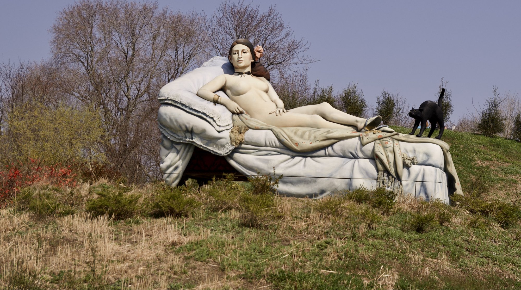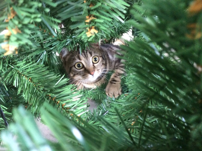 I'm not sure what the cat is doing in the sculpture...but its there...ready to attack!That's funny, but it scared the cat?