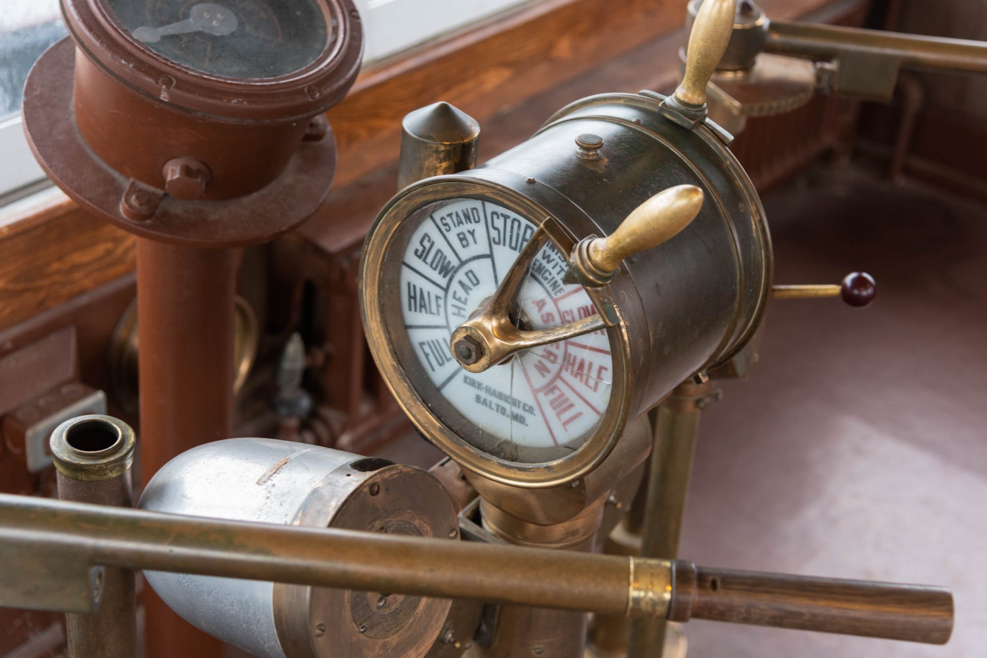 The Black, on the other hand, is both large and fairly spartan. The Black was operated into the 1970s, so I expect there were radios and the like at one time, but all of that is gone now. Still, though, there's not there other than the telegraph(which can signal for the port and starboard engines independently-unlike on a sternwheel boat the engines do not even have to run the same direction), a compass, a speaking tube, and a couple of other monitors. Steering is entirely by levers with no wheel in sight.