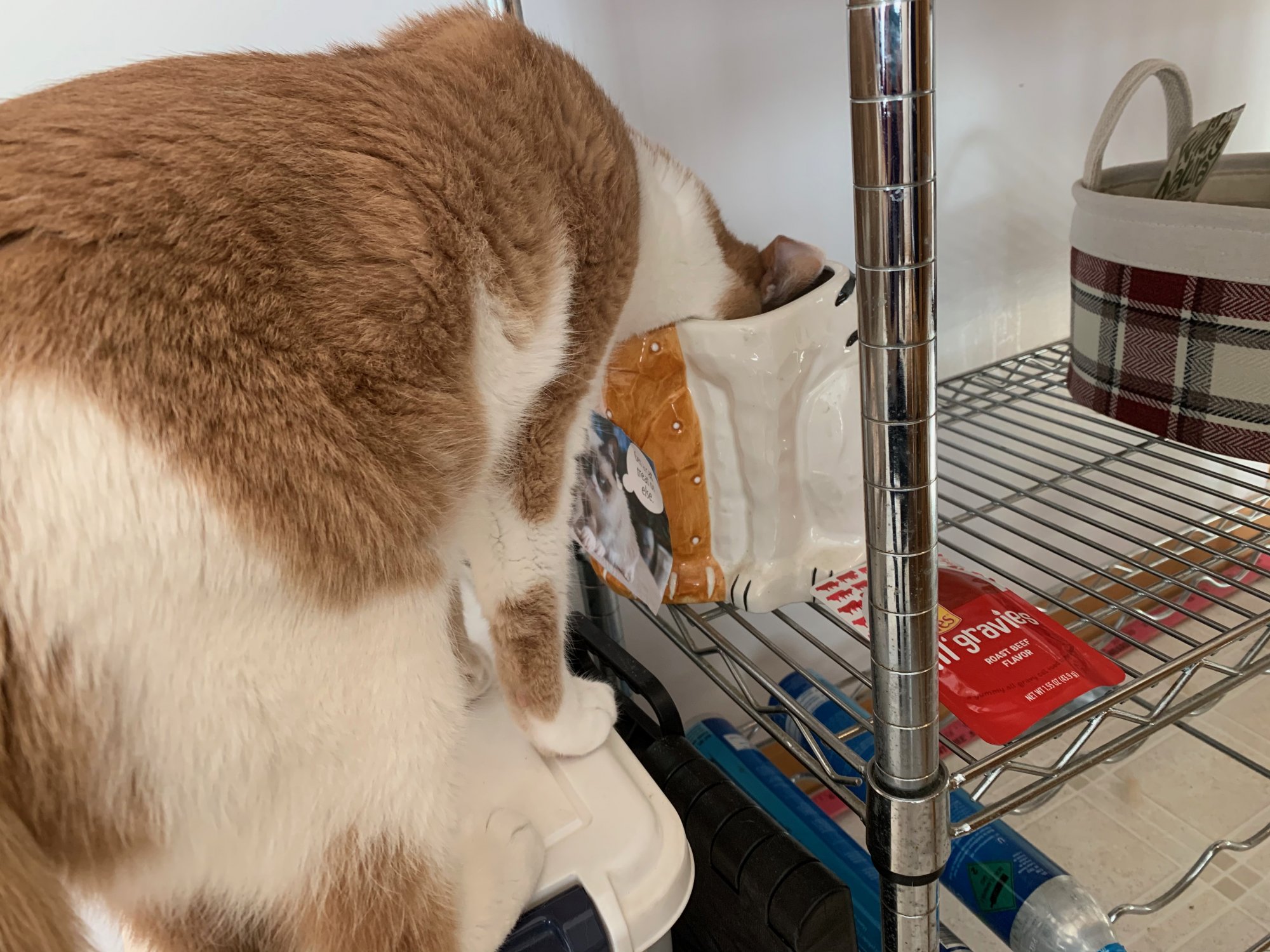 I love your Sinclair. You seem like a very wise and nice guy. Can you shed light on how to move on after the passing of a beloved feline friend? I'm having a bit of trouble. And my neighbor kindly told me that "no, you never move on". What???So yesterday I posted a picture showing Watson waiting to be given her treats. So a little later I put out treats for all our cats, and then went to put out some food for the 2 outdoors cats. As I go back to the treat jar to put the cup back in, here is what I saw: