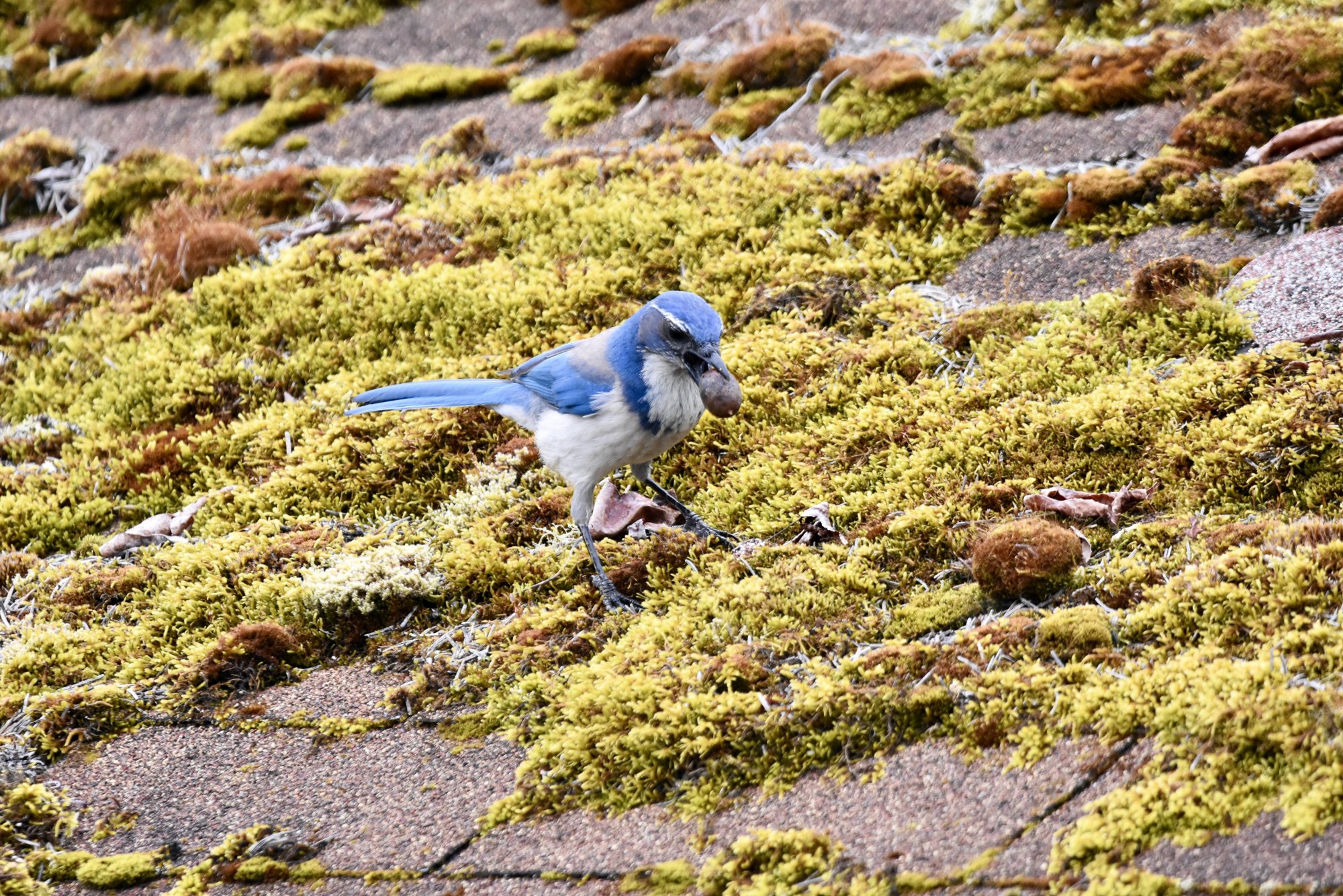 Nice. But you have got to do something about that moss!A clever Bluejay hiding the food in the roof moss for a later snack. It was taken with my new Sigma 150-600mm.