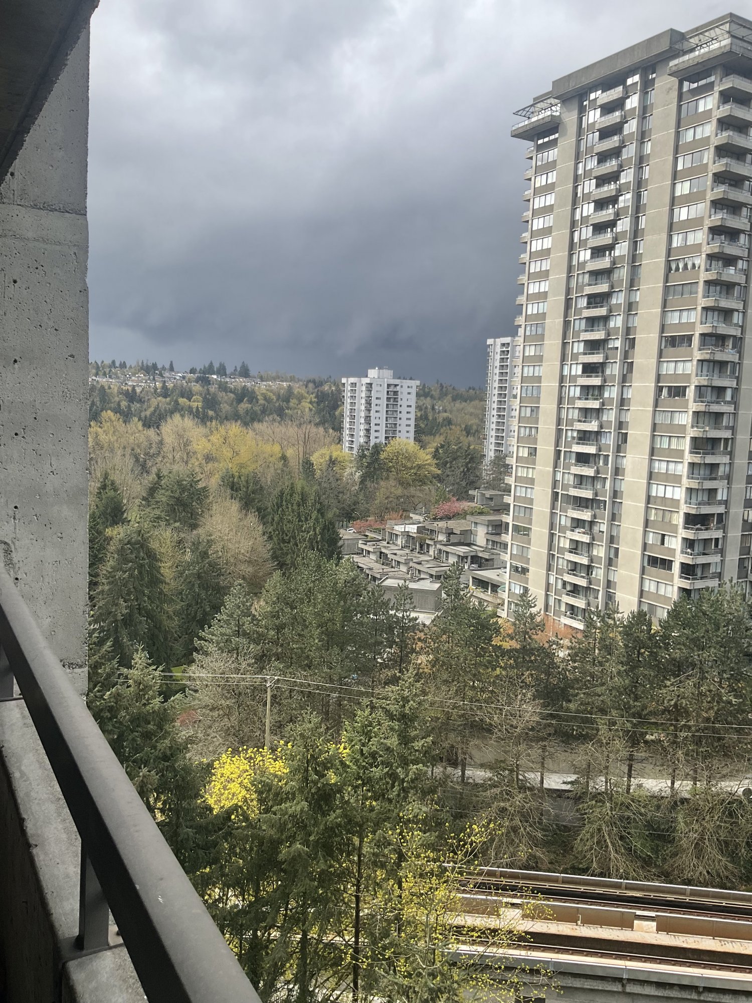 An approaching storm over Burnaby, BC yesterday, as viewed from our apartment's balcony, during an extended 'watching & waiting' happy hour yesterday. When it finally arrived near us, we had a good, but quite brief, downpour of rain mixed with some snow. April showers!!