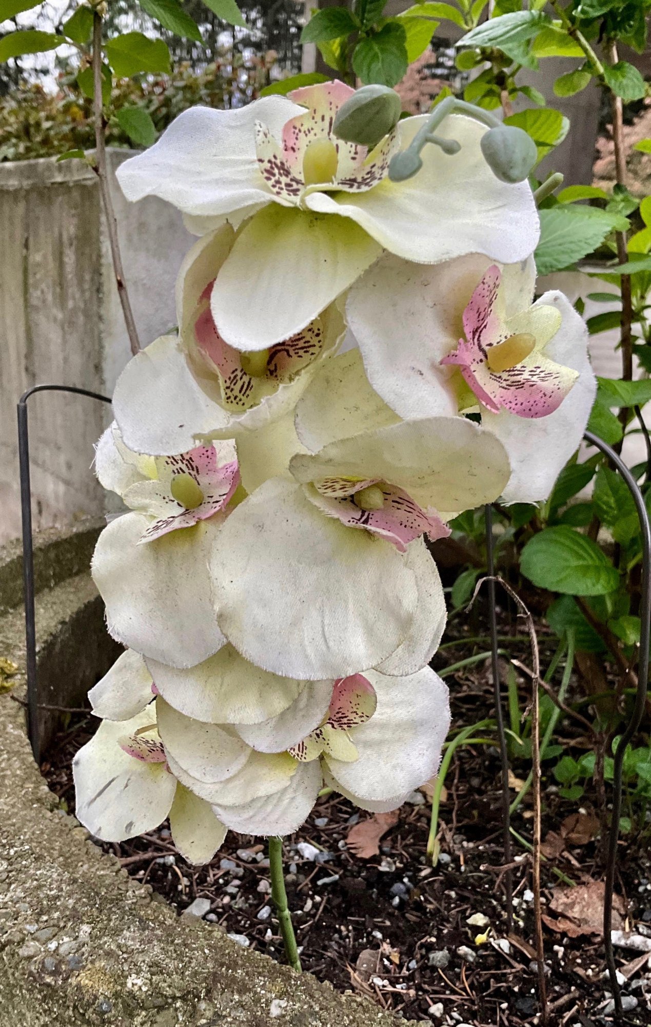 Thanks Molly ... looks like I was well-taken by someone's April Fools gag. I was suspicious of the situation, and should have checked it out more -- with my hands!! I've added an update to my original post -- sorry to everyone for the mistake -- I would never have posted the photo, as I did, if I had known at the time, the "plant" was not real.they are fabric orchids 🙃