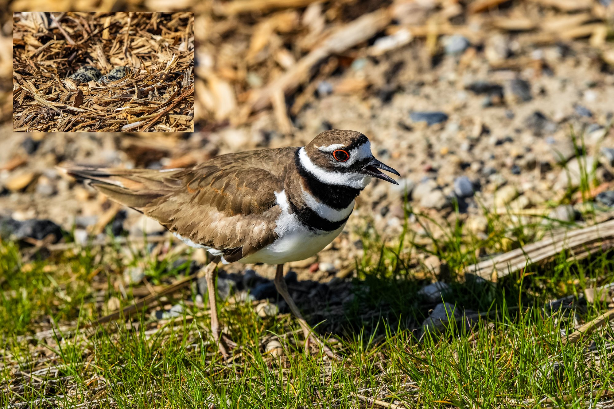 I walked in Hines Park (Wayne County, Michigan) and checked on a Killdeer nest. Using my Sony 400mm GM Prime Lens to stay distant, I observed these brave birds, which perform a broken wing act to lure predators—like me—away from their nest. They’re odd little creatures.