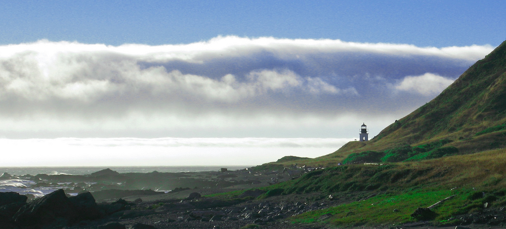Great location... and that cloud is spectacular. An opportunity, IMO, to get a simple, graphic, elemental shot of sea, cloud, cliff and lighthouse. The composition, as is, seems too cluttered. The eye is distracted by the foreground. Just my opinion, of course...