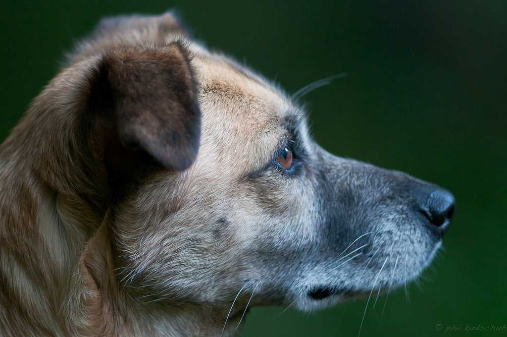 Her name is Tequila, a.k.a. "Tiki Tila" (or "Tiki T" for short.) I got her from a dog rescue sanctuary in Baja about 5 years ago. I was out shooting with the 300f/4 and the dogs were moving around really quickly in their 'hunting' mode, but I did manage to catch her standing still for a second or two, although a bit closer than I'd have liked.