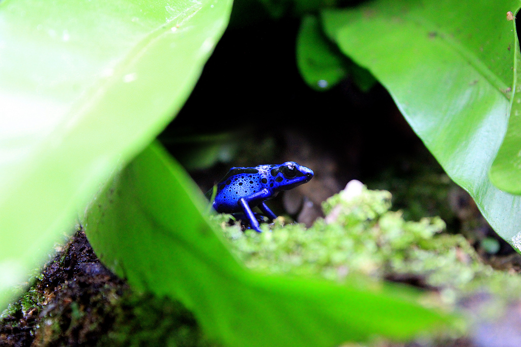 Crop this to move the frog off center and you have an outstanding photo. Keep the aspect ratio the same, but get rid of the washed out leaf area on the left of the frame. based on your Flickr info, this was shot on a British Island in the South China Sea. Was the frog in the wild?