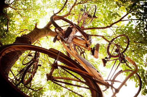 I see a flock of geese being chased by a crazy man flapping his arms and a woman with a camera laughing. I guess you can call me crazy![]()