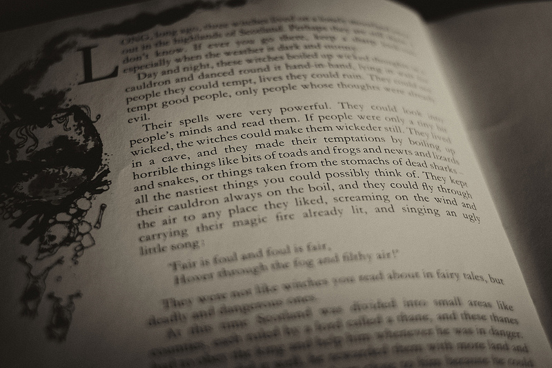 I really like this photo and keep coming back to have another look at it. I enjoy your shallow dof photos and your ability to make a compelling picture out of the (sometimes) mundane. Good choice of book with the decorated pageit wouldn't have worked half as well with something plain and everyday. The first thing you notice is "The spells were very powerful" which, of course, grabs the attention!