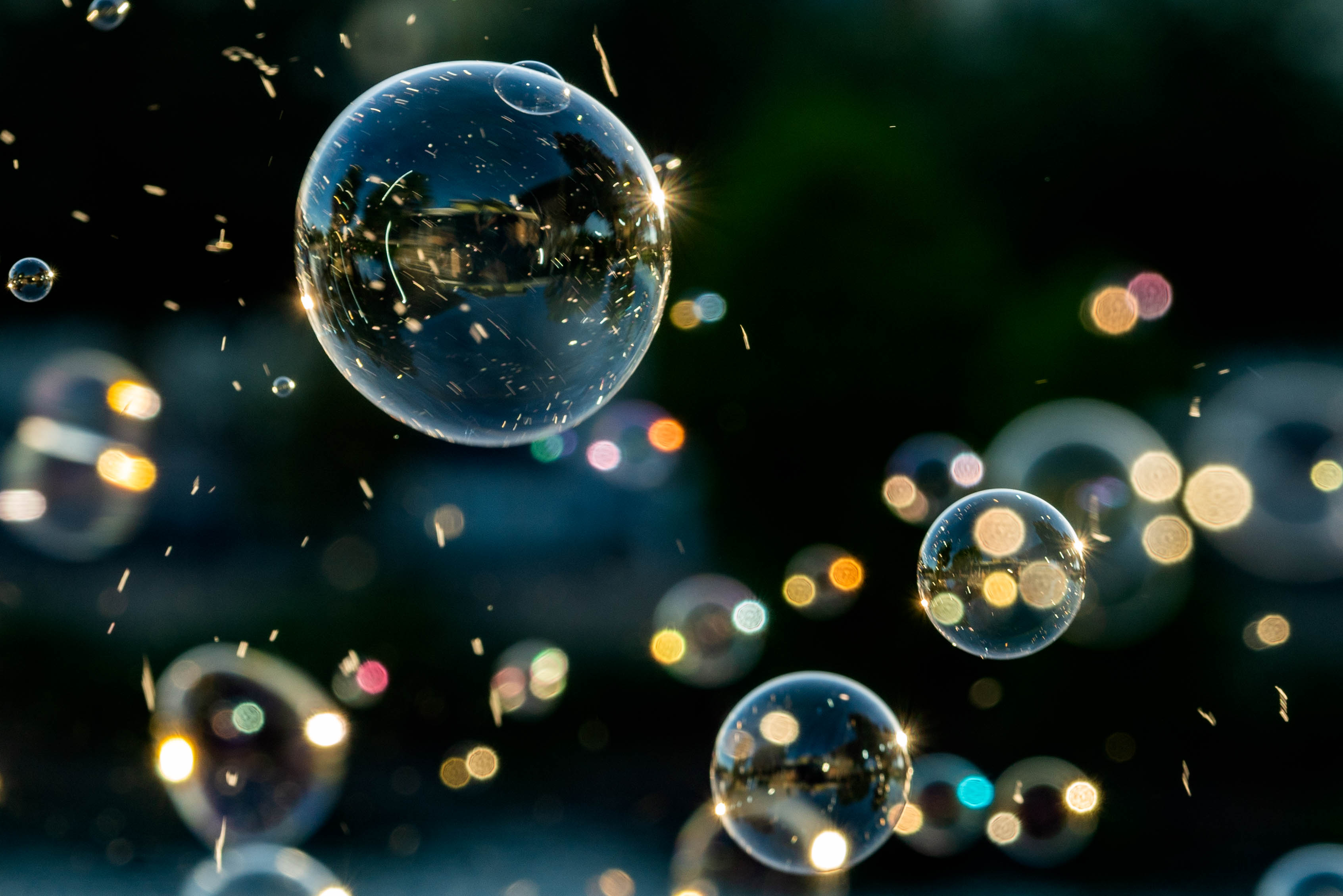 People at a park were having fun...and I had a challenge. Bubbles are really hard to capture! Happened during a local photo club meeting with our meeting place reflected in the bubble.