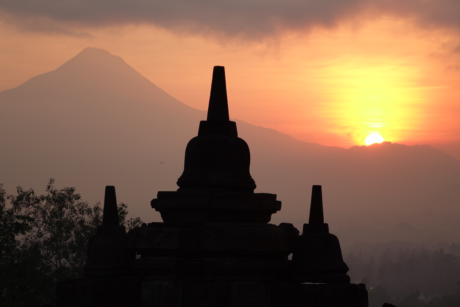 Borobudur and the Merapi volcano in the background