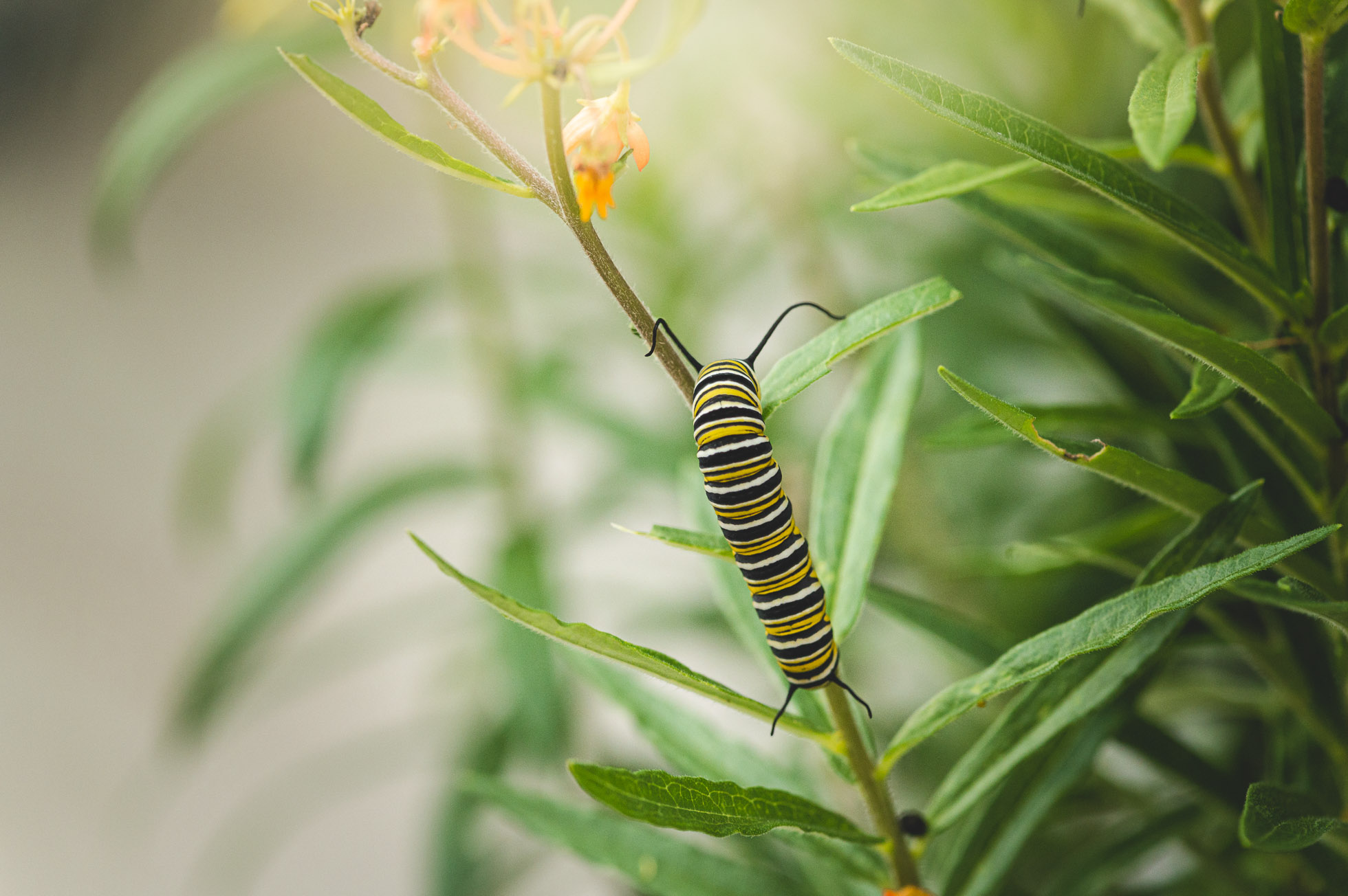 Here is one of our monarch caterpillars. We are hoping they don't start to form the chrysalis until sometime after Friday. Allegedly they will cocoon from the top of our net box, and we are worried that they'd fall off in the car ride home. Although truthfully I think the car would be a lot safer than if it cocooned in the wild with storms and predators. Who knows. So far all 11 caterpillars are growing. My daughter is hoping that we get five butterflies by the end of this.