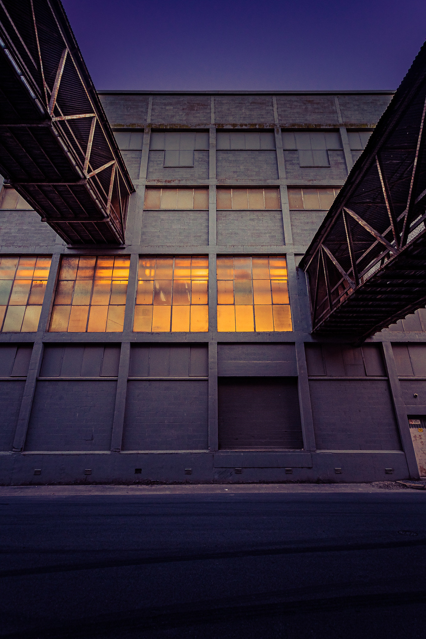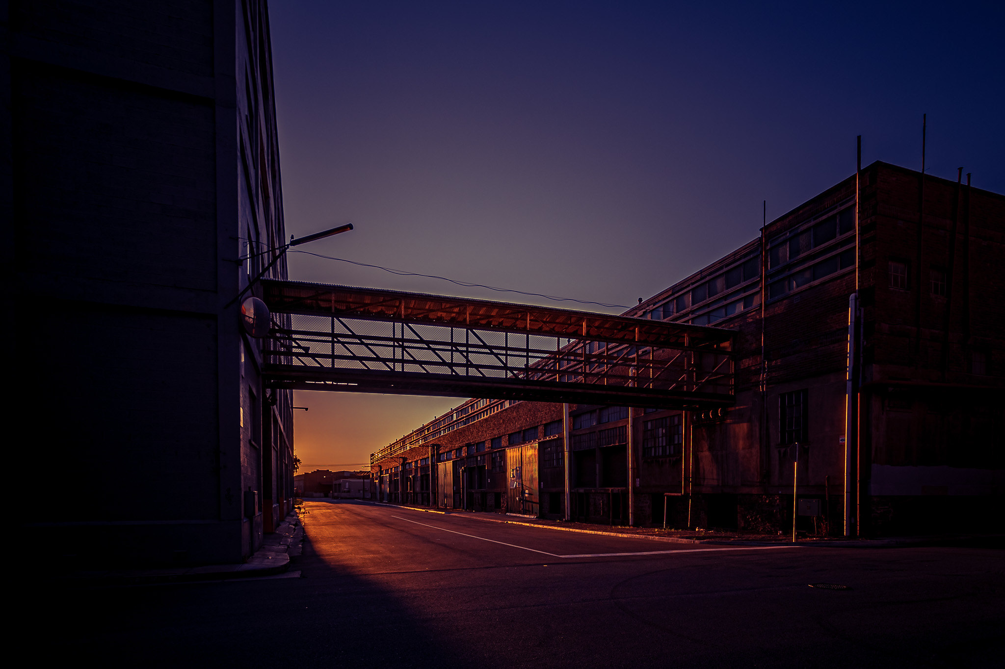 You can't beat it when Mother Nature puts on a show, this was perfectly timed for the golden glow to be punching right through the warehouse! Well, I did enhance it a little bit...Great use of complimentary colors.
