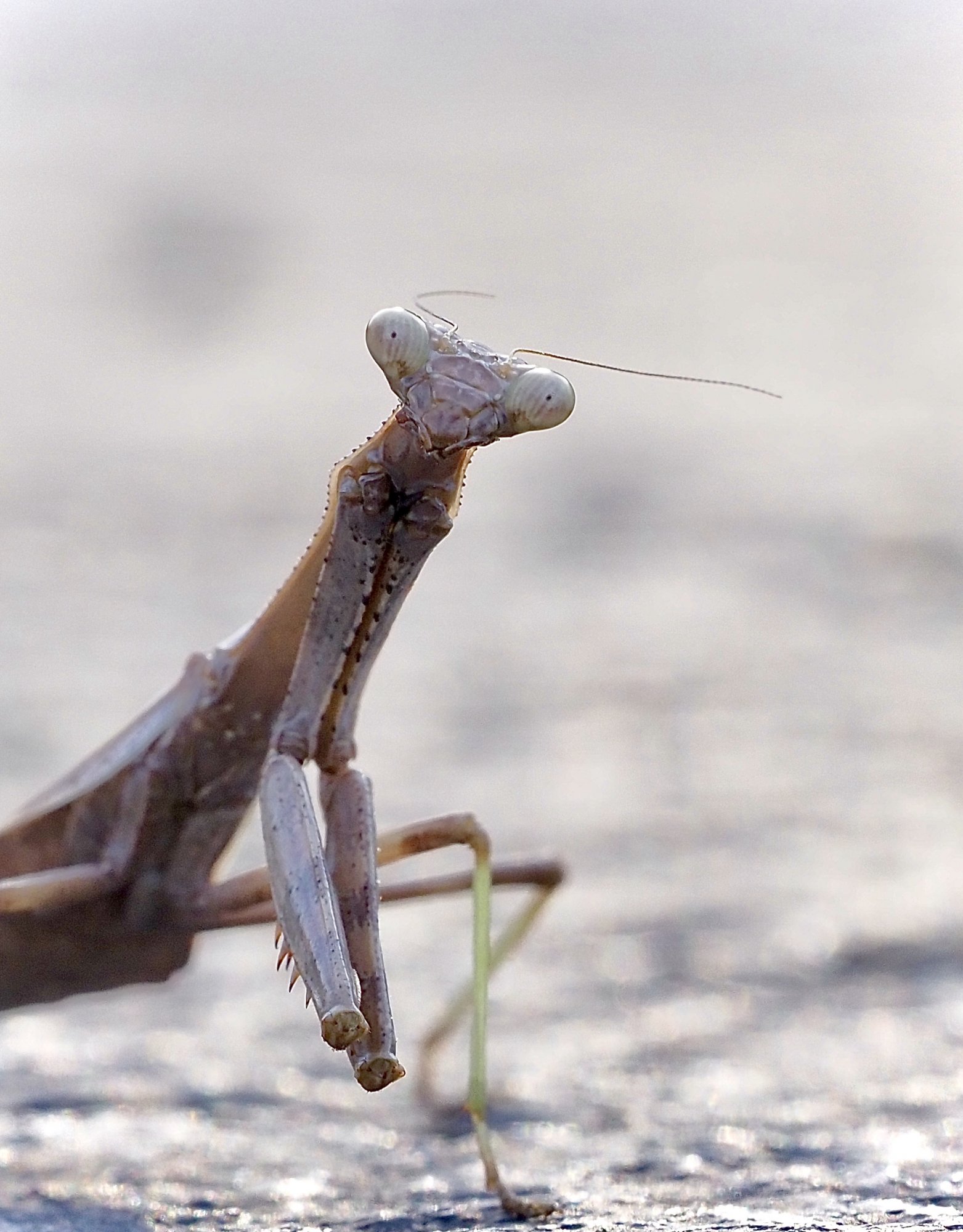 The poor creature has lost the bottom two sections of its front legs.The mantis I mentioned yesterday. They are peculiar in the insect world in that they seem particularly interested in humans when we pay attention to them. This one didn’t like me trying to shoo him away into the grass and was actually a little standoffish. Just trying to keep you from getting squished, bud!