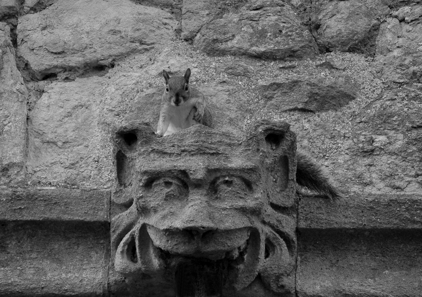 Squirrel in the spout has to be better than bats in the belfry!"Oh no, not him again."