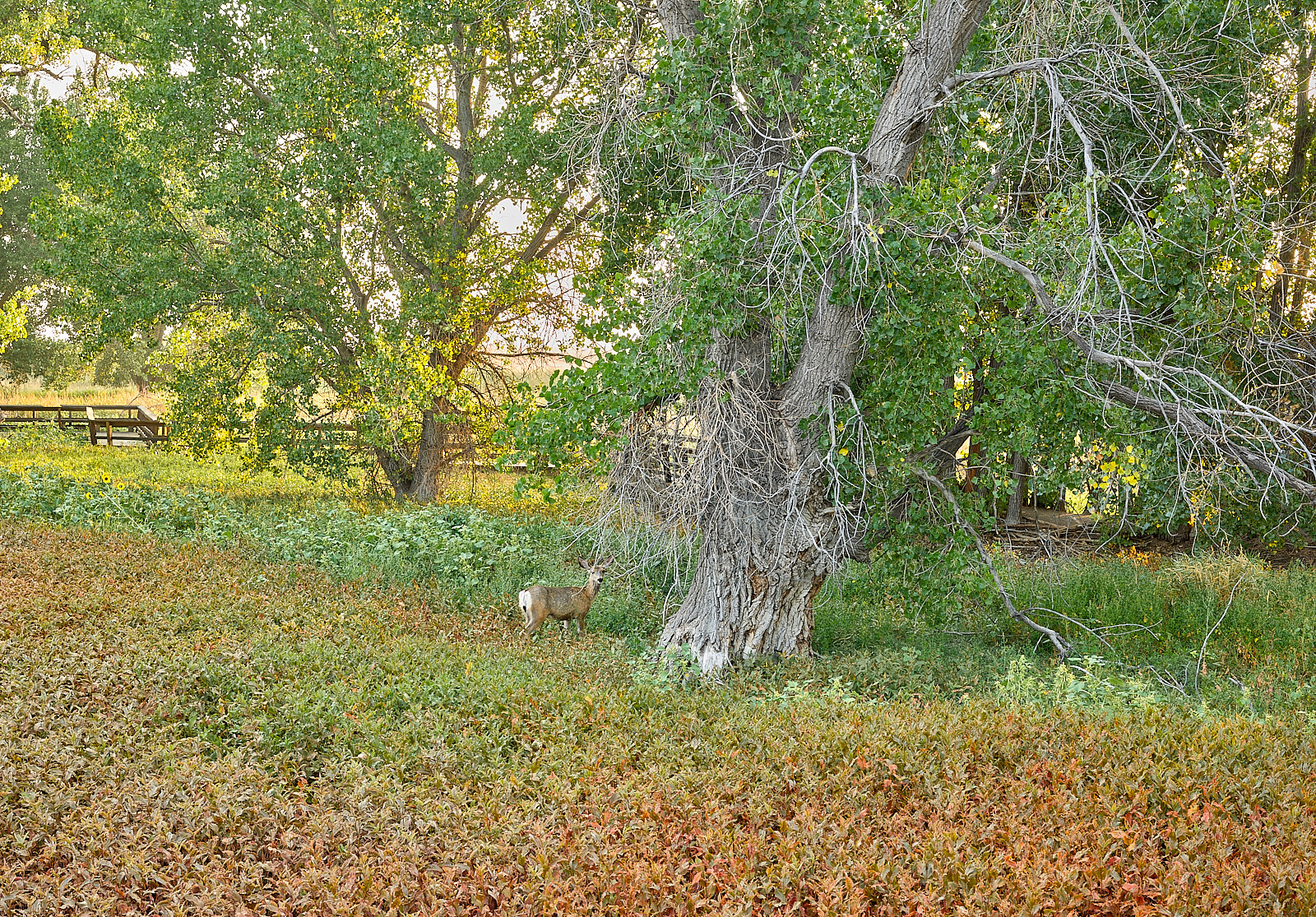 This Colorado state park is called Barr Lake. It's a lake that's a reservoir for farmers in the area and at certain times (this is one of them) it's very low. Where the deer is standing, it's often under water (or close enough). Other images in this series will show how very low the lake is. It's also the home of a large breeding population of Bald Eagles so it's very interesting over the January-March timeframe as the birds are raising their chicks and hunting fish in the lake.