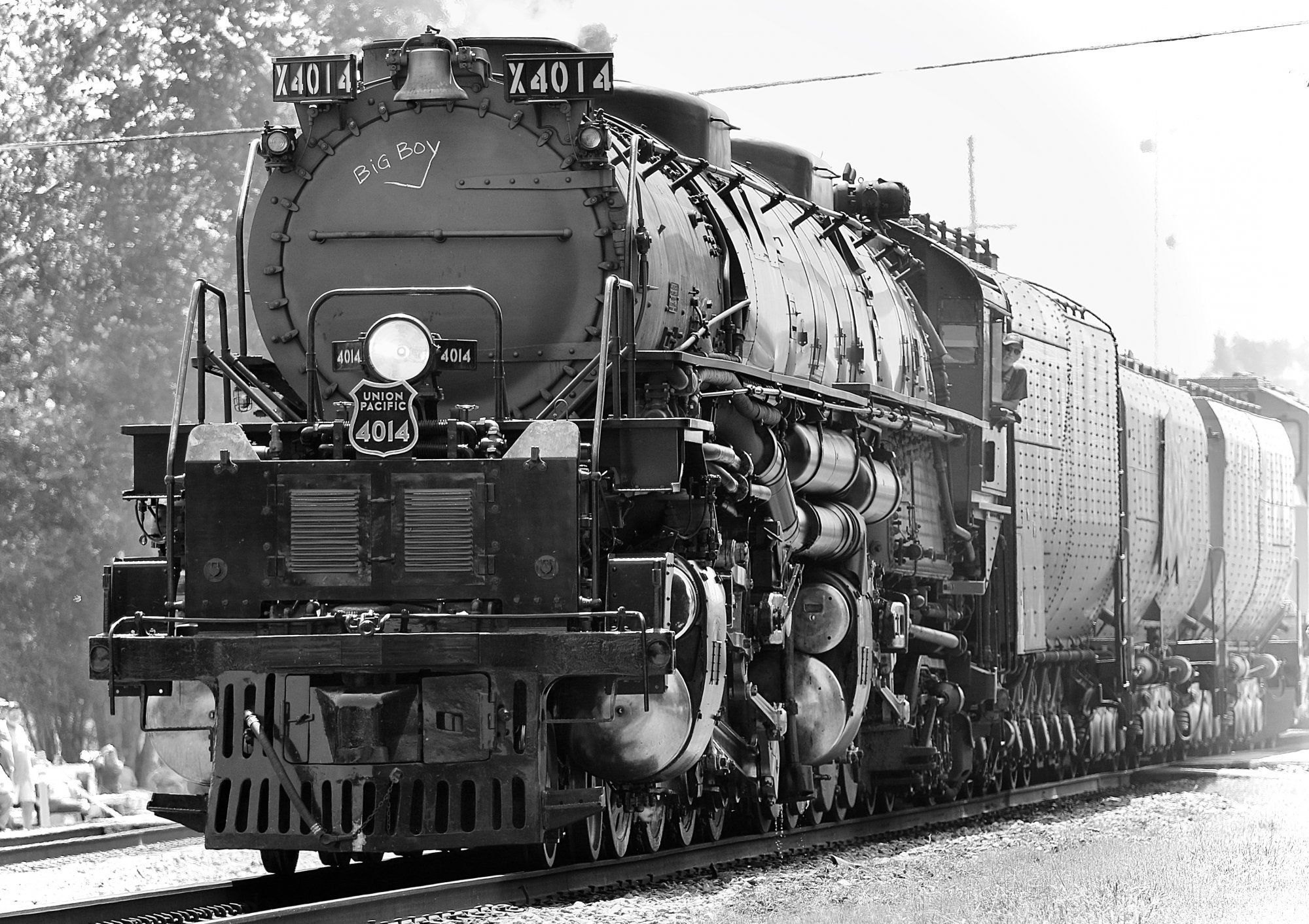Big Boy has been through our city a few times and I've just not been able to get out there and get the photo. I get the feeling my son would love it, but it was during the week and I didn't know about it soon enough to take a day off work.Union Pacific's "Big Boy" engine #4014 is on tour and I totally grabbed too long of a lense and went out to Bunkie, LA along with a couple thousand other folks. Made about a hundred snaps today and this was the last one I took as Big Boy was pulling out of a cloud of steam. Was able to make this one photo with no people in it by cropping out that one moron that crossed the police barrier and got in front of everyone with his phone. Would like to have framed it a little bit looser, but ... View attachment 1822354