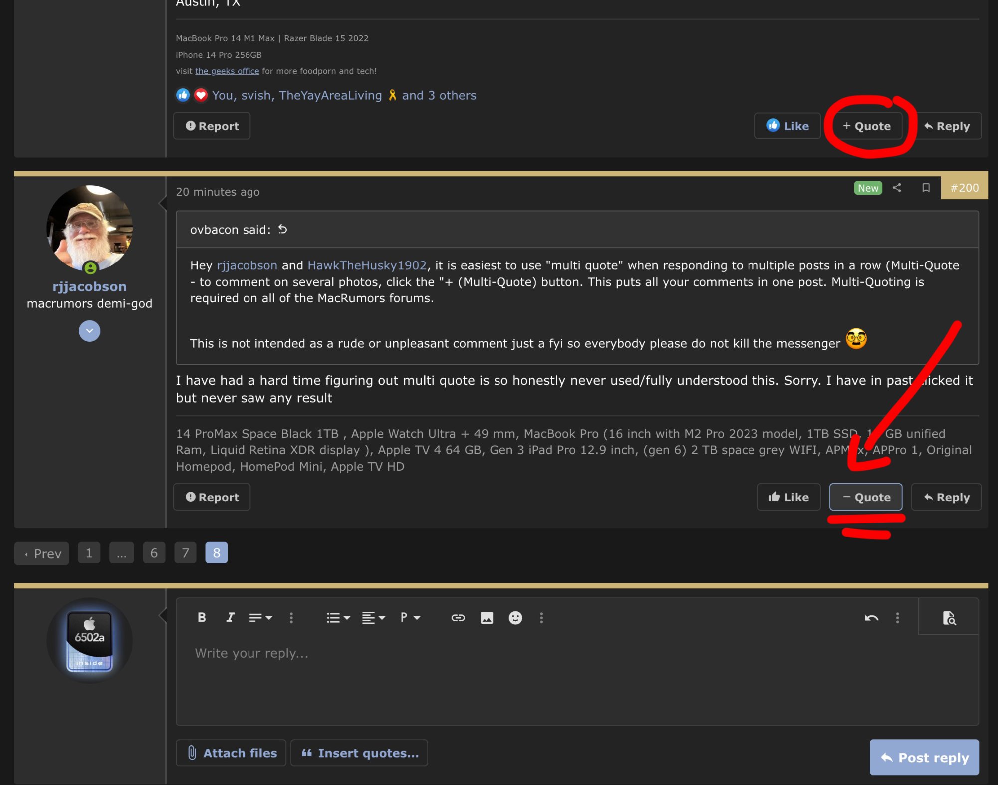 Ah I was missing the part where I had to go to the reply box and hit the insert from saved quotes there never seemed to be any instructions and over the years that I used the forums sorta just learned enough to use them but never could find out this one. Thanks much @ovbaconYou find all the posts that you want to reply to and hit the "Quote" button on each of them.
