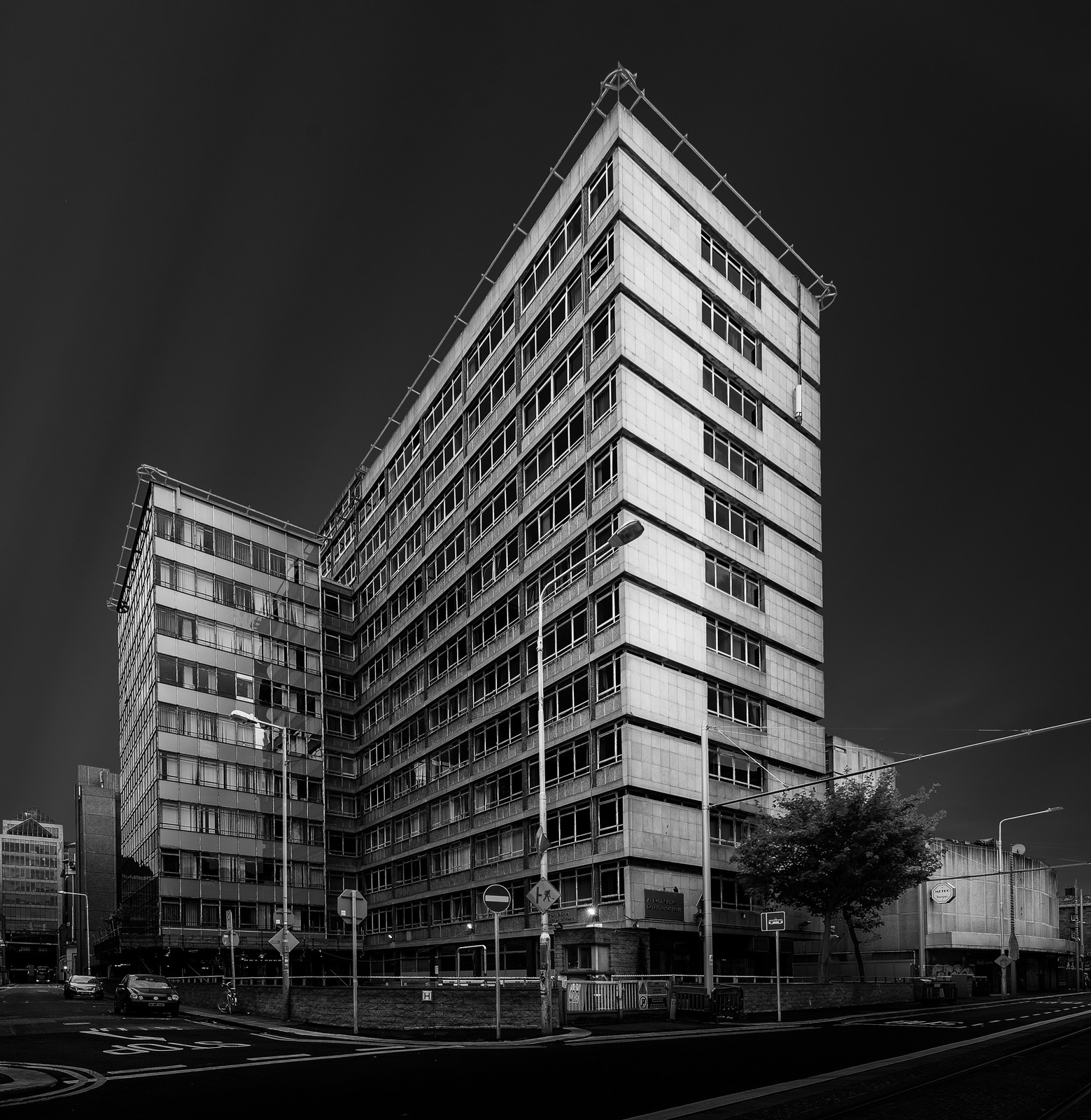No changes have been made to the physical structure of the subjects, bar removing some distracting elements that are not integral to the buildings, such as poles or wires. The consequence of the processing described above is that the light that appears to fall on the buildings is almost completely artificial. The intention is to create a highly subjective view of each building – one that uses light and shade to emphasise and highlight shape, form and volume.