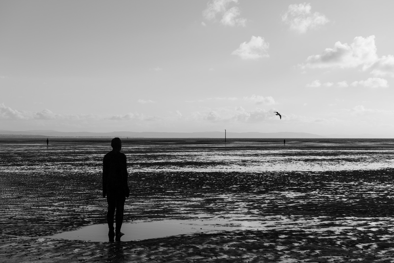 Another archive shot. Another Place, Statue, Antony Gormley, Crosby beach.