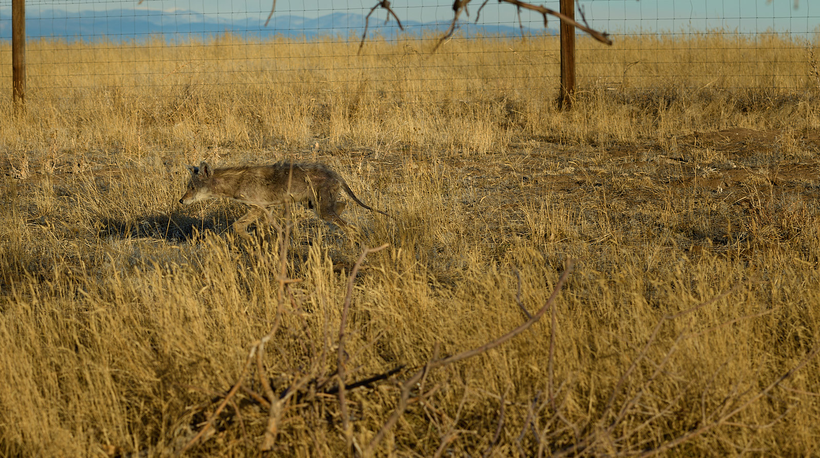 A very hurried shot of a coyote out at Rocky Mountain Arsenal here in Denver. You hear these scraggy animals more than you see them. You haven't lived until you've been outside at dusk on a winter's day and you hear the howls of individuals in a group of coyotes. Magic!