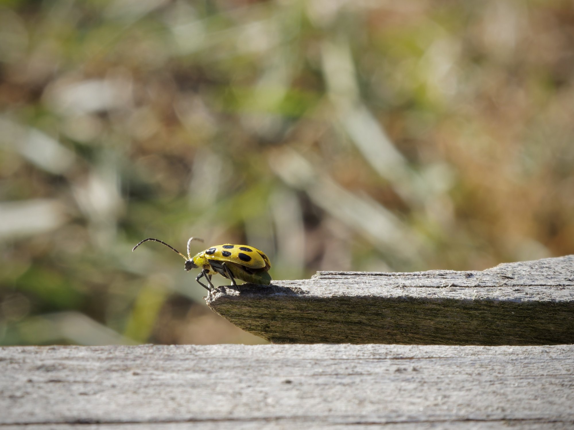 I just take lots of photos and hope for the best in a few of them. The photo is a bit deceptive, as it looks like it is hanging out, but a second or two later, this fella moved to the underside of that chunk of wood and was out of sight.One of these days I’m going to have to learn the magic of hypnotising insects. They just don’t seem to like to pose for me.![]()
