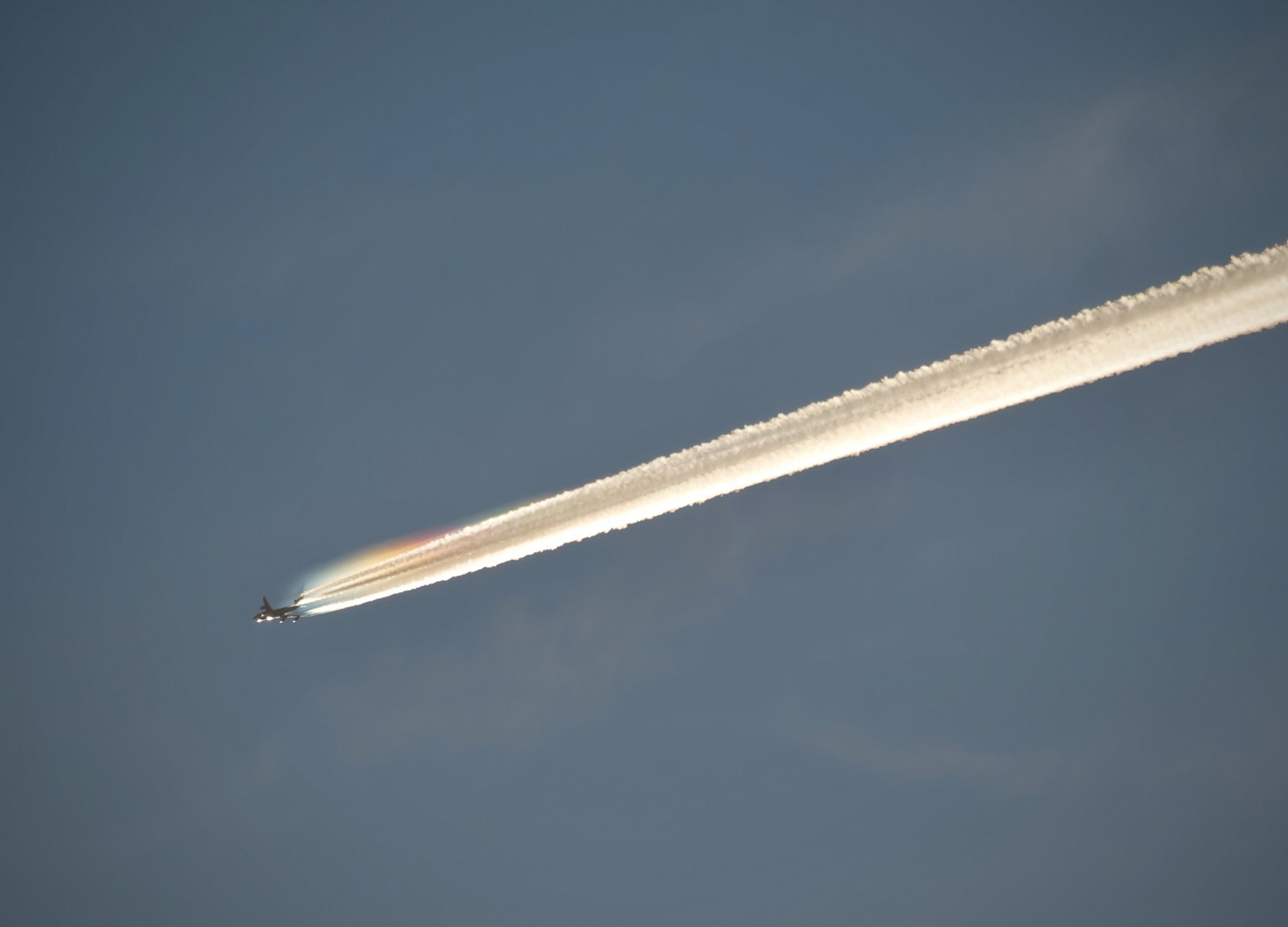 That's a mass vaccination device!Happened to catch this really cool effect while photographing a jet in the upper atmosphere at sunset.