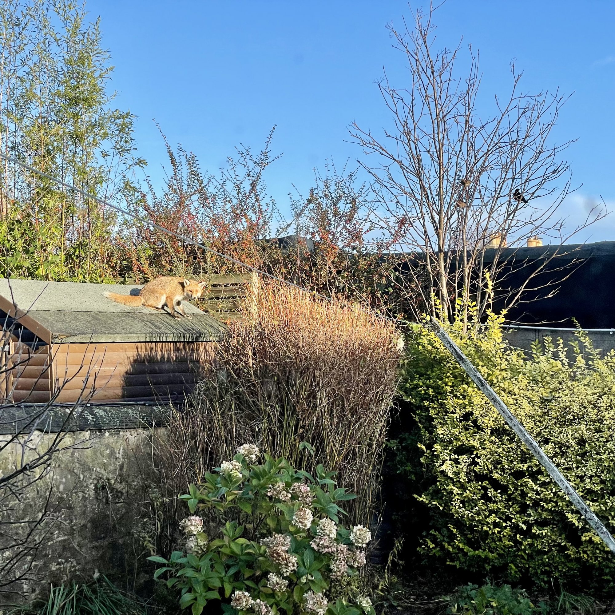 For a moment I thought that it was a "fox on a hot tin roof"The Fox & Blackbird