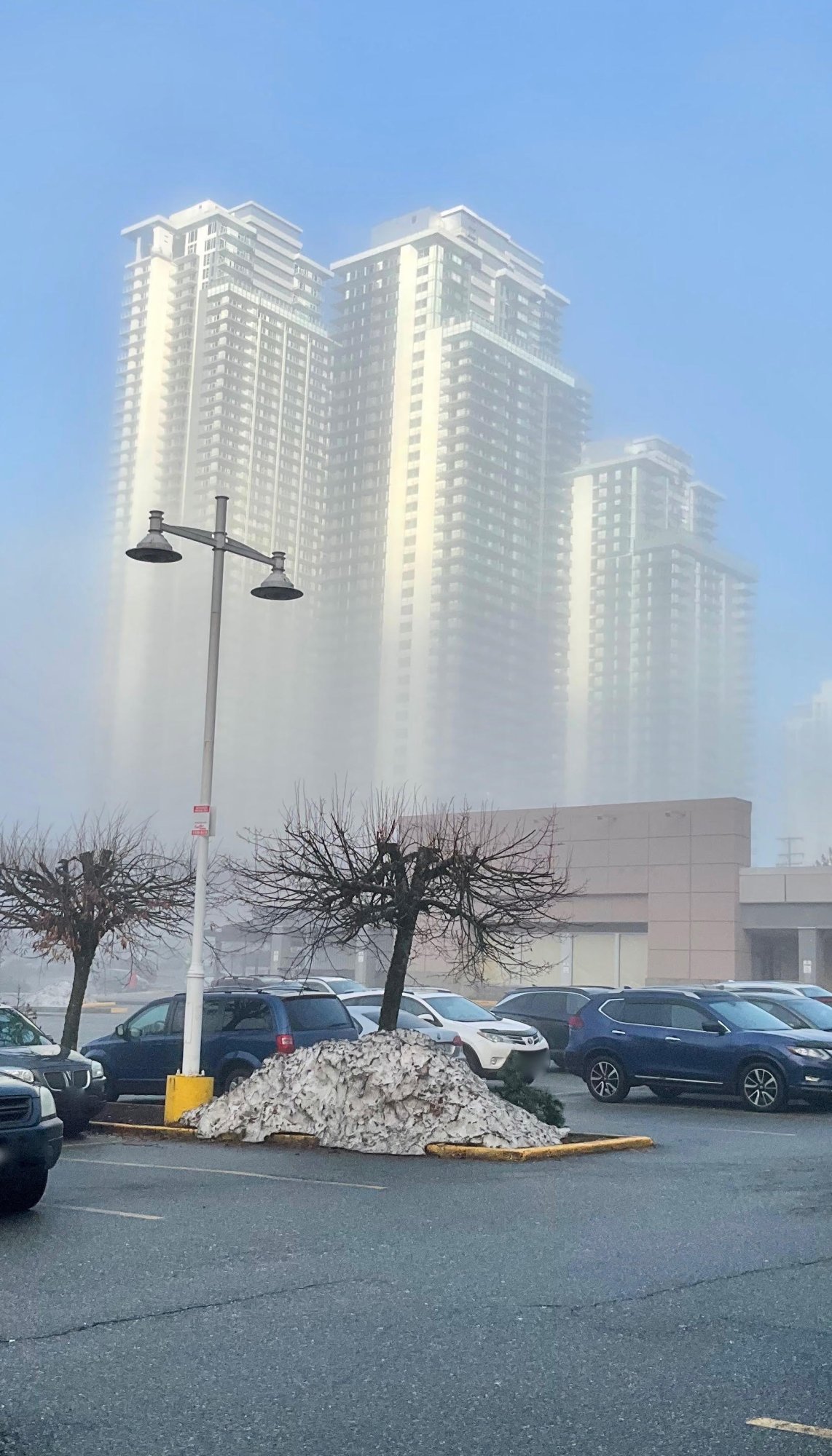 Cool ghosty image.. nearby high-rise apartments rising from the fog of an early-morning today (captured from a local shopping Plaza).