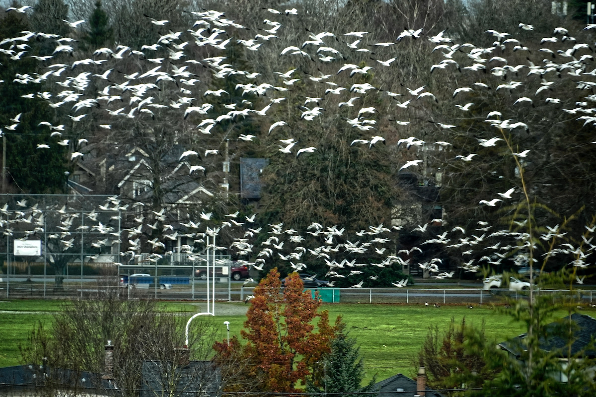 It has been sometime I wanted to see the snow geese up close. Last year I went to a Migratory Bird Sanctuary but they were too far away and couldn't get a decent photo. Yesterday a huge flock came to a field by my house. Fantastic ! More photos to come 🙂