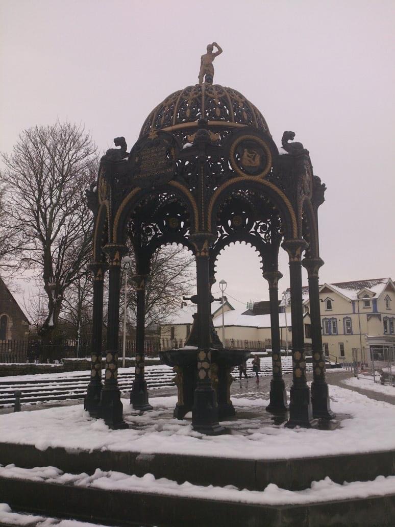 This is a memorial fountain in the town of Merthyr Tydfil, in the snow a few years ago. Stay warm and safe out there, wherever you are