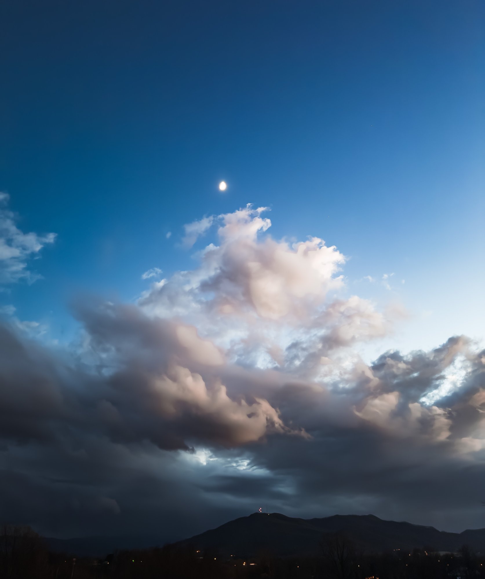 Wonderful capture of the clouds.Took a walk to the top of my neighborhood. We had a very windy day that brought some snowflakes, with the dark gray clouds on the left, and clearer skies coming in from the west, where the light is coming from. The sky looked like a painting.