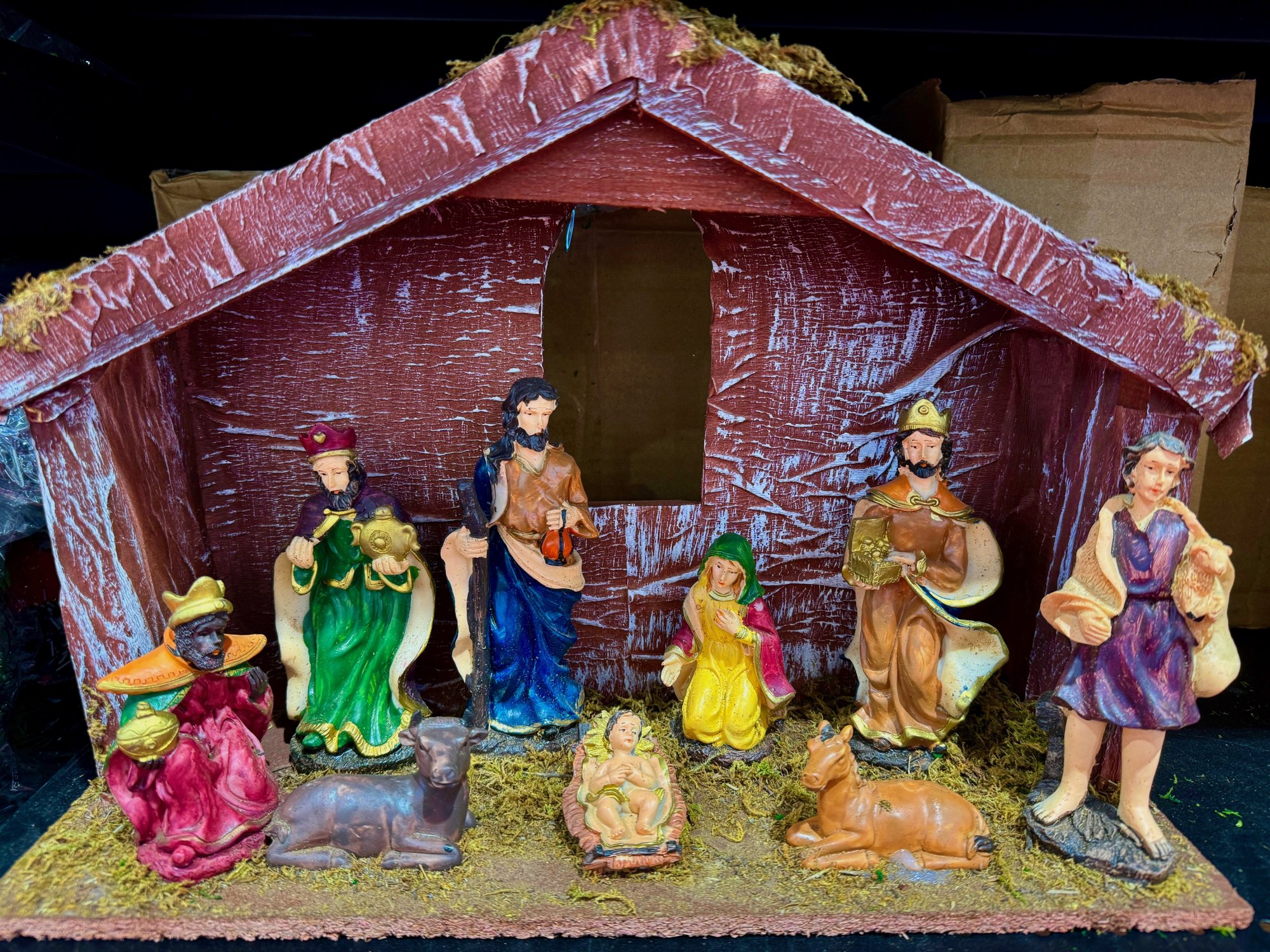 My parents had this same set: same hut, same figurines.Some of the figurines melted aging. I don't know if these are the same rubbery ones