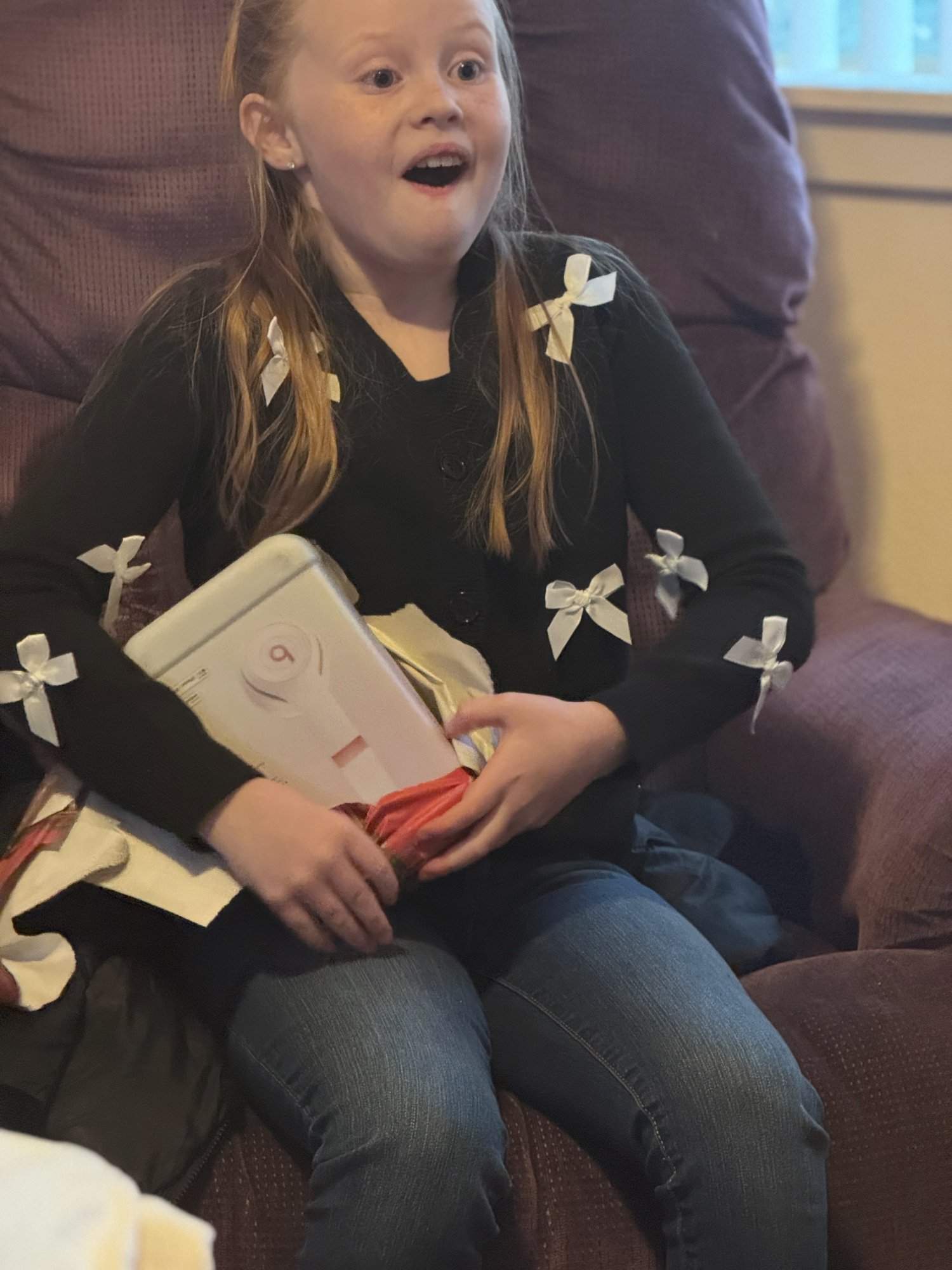 I celebrate Christmas with my daughters and my grandchildren on Christmas Eve day. We had a really nice get together. This is my granddaughter opening her most coveted gift. Oh, to be nine again. ~