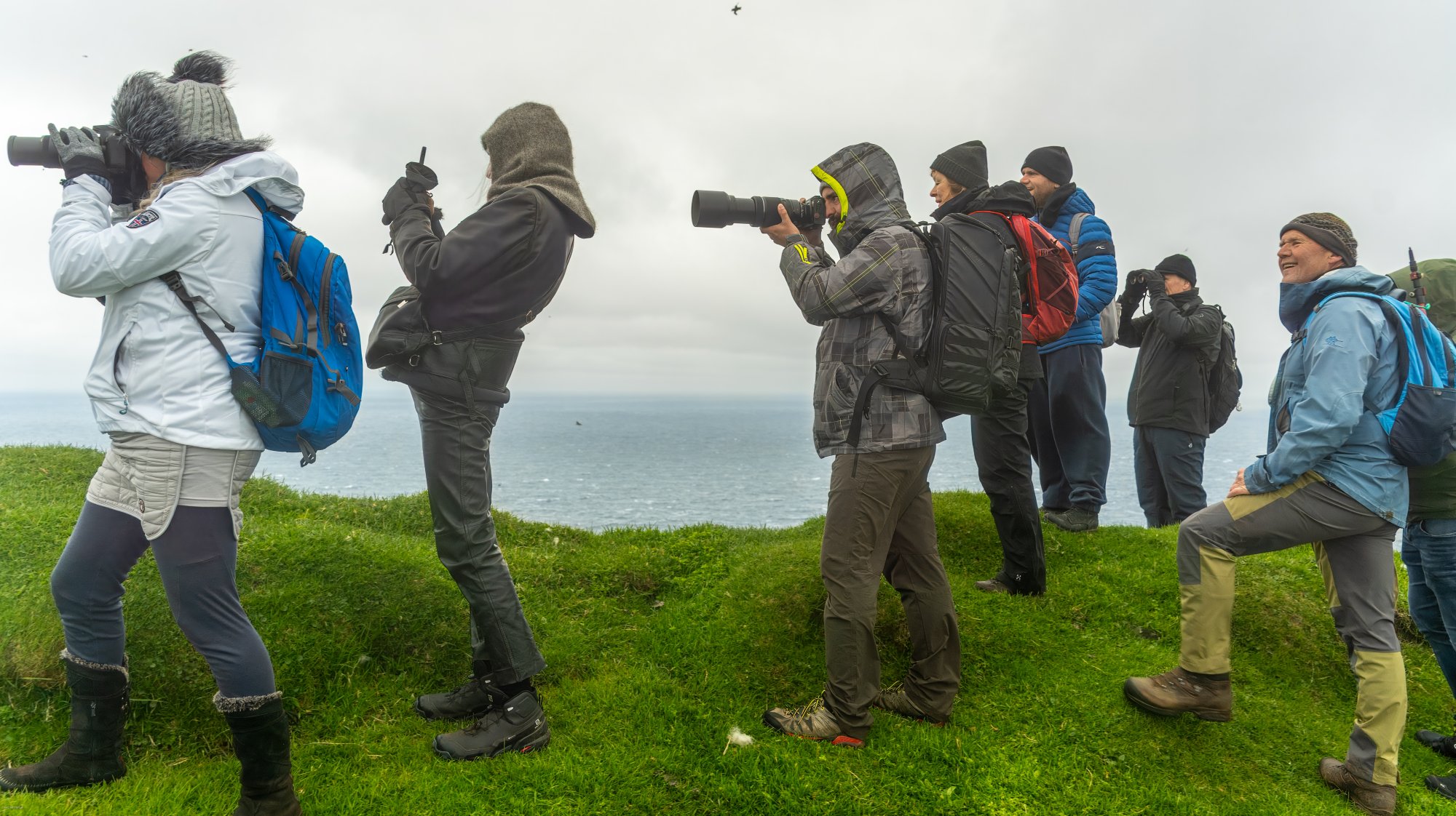 Photographing the photographers. Mykines, Faroe Islands. May, 2022.