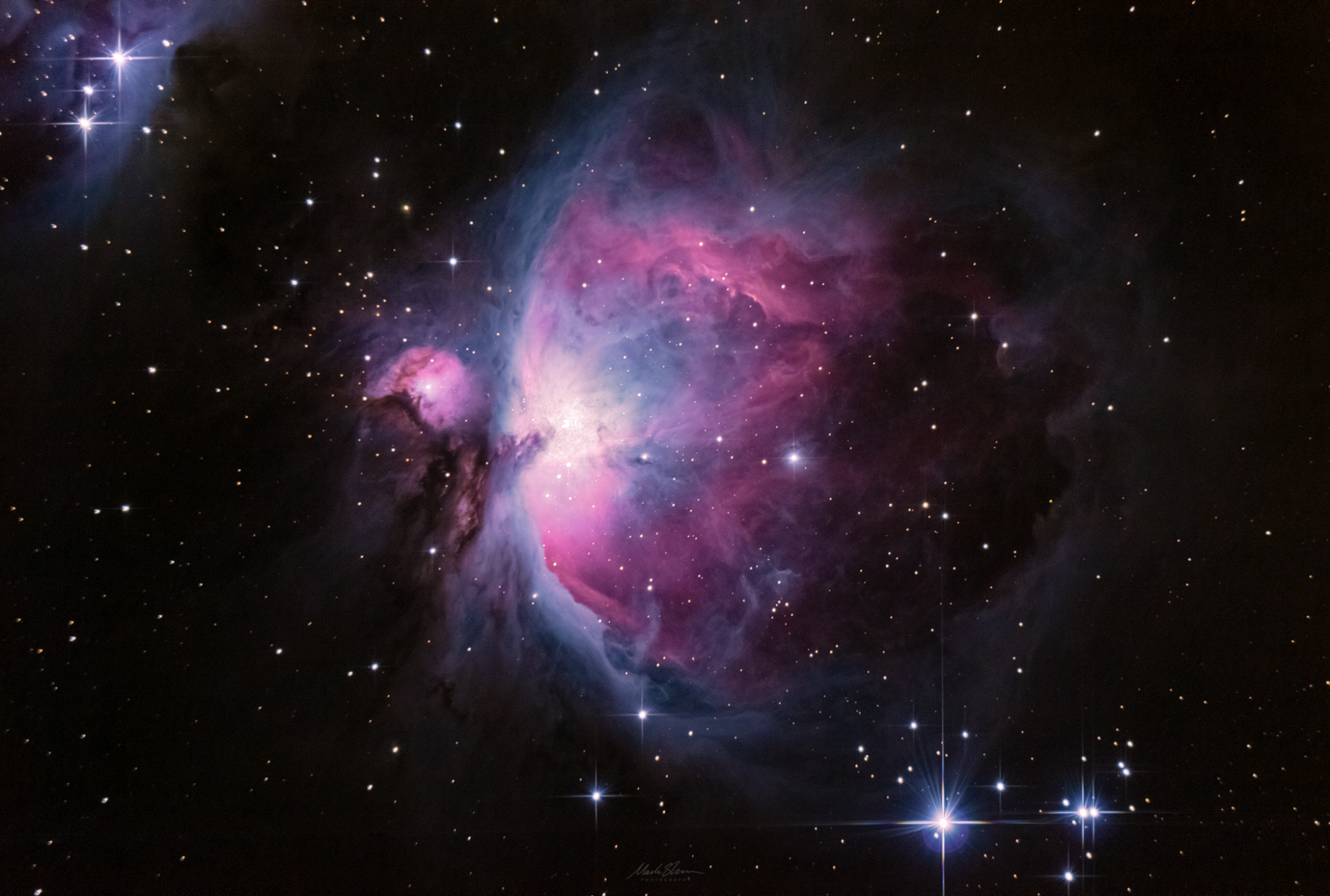 A departure from the norm for me, this image is the Orion Nebula, shot with a Canon 100D DSLR attached to my 8" Newtonian Reflector Telescope on a motorised tracking equatorial mount - from my back garden in SW Scotland.