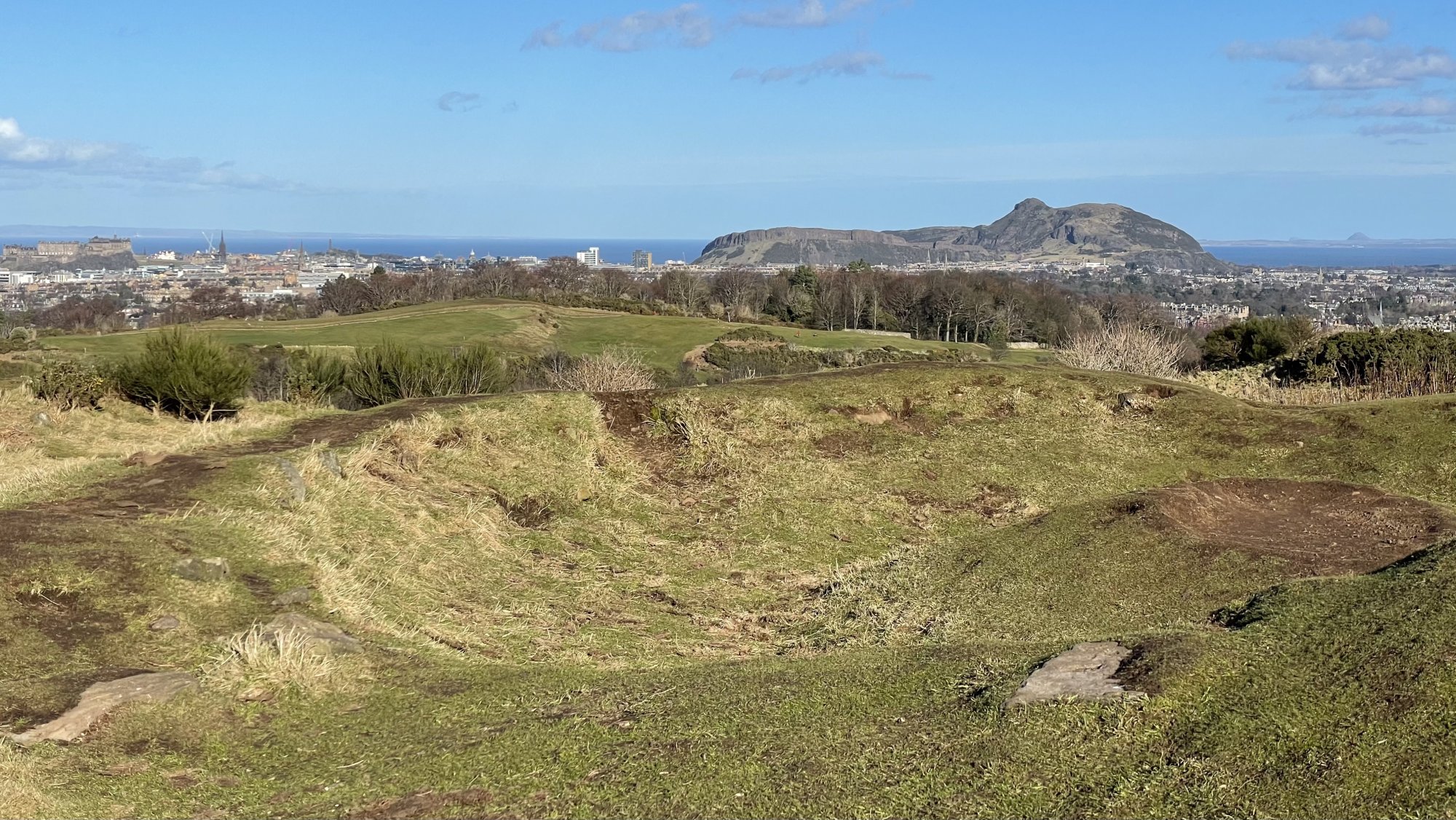 Looking the other direction isn’t there one on Caerketton Hill too?Viewing one Iron Age fort on Arthur’s Seat from another on West Craiglockhart. No doubt there was also something on Castle Rock (on far left) and Berwick Law (in far distance on right).