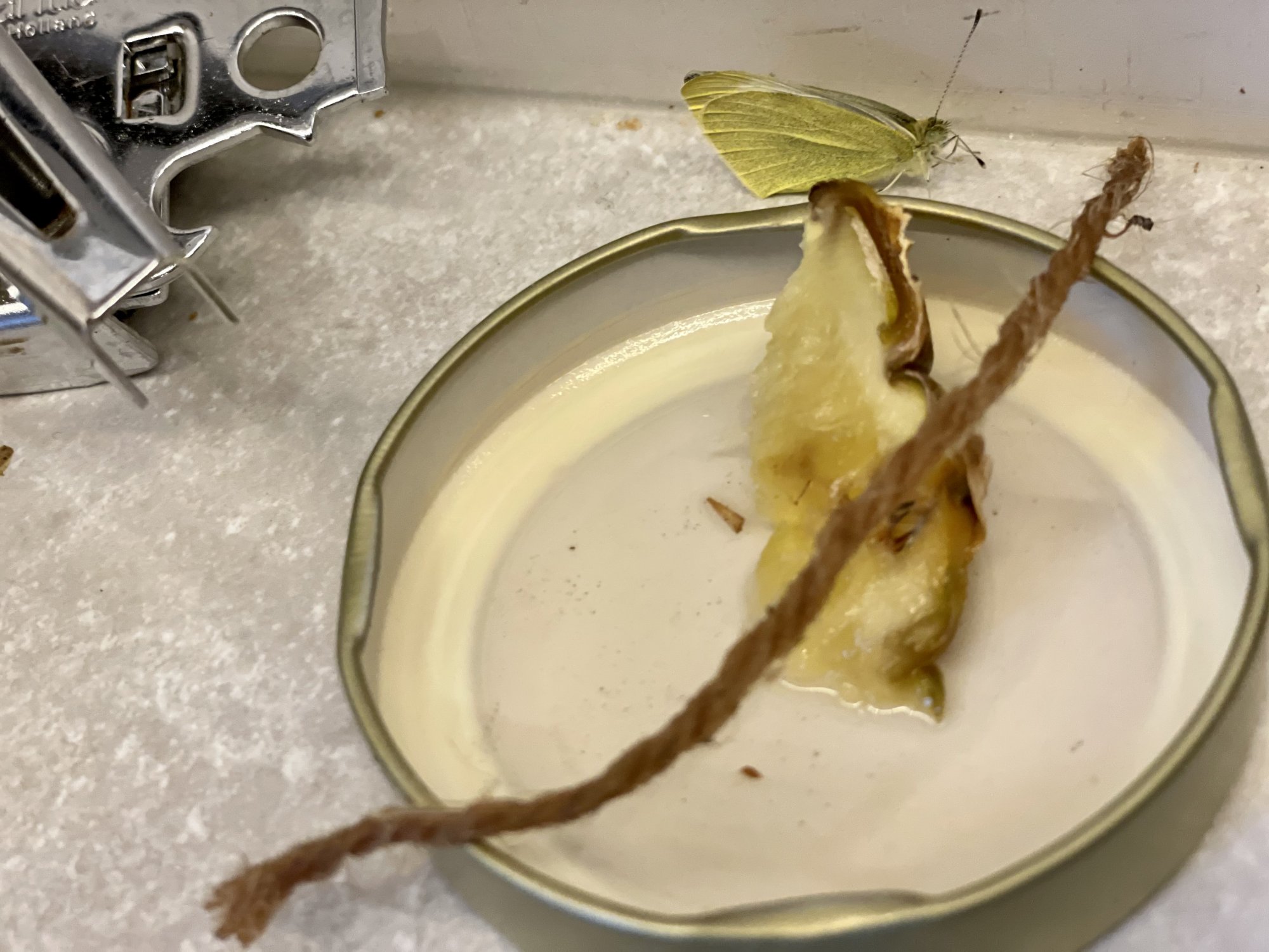 Trying to keep the creature alive by making available sugar laden string and a bit of pineapple. I later transferred her/him to the salad we had been growing on the window sill and S/he seems a lot happierI‘m confused 🤷♀️ what’s going on here?