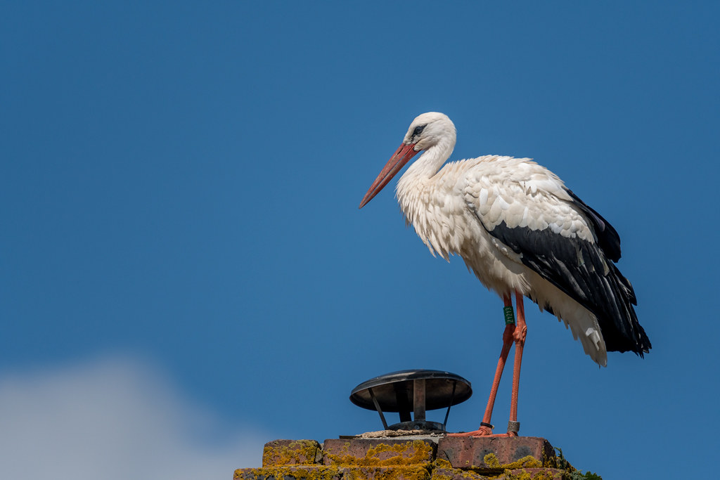 A rare visitor? That's a pity. Numbers are rising in the NL. They used to be a rare sight too. Nowadays it is not uncommon to see a group(flock, herd etc) roaming a field hunting for mice, frogs. A great sight.A rare visitor to the UK, a Stork spends some time on the chimney of the original home of Sir Peter Scott at WWT Slimbridge, Gloucestershire, UK.