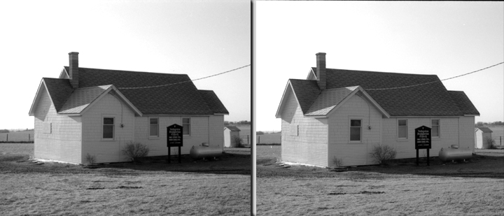 Ilford Pan-F 35mm film somewhat cropped. Stereo image as well.