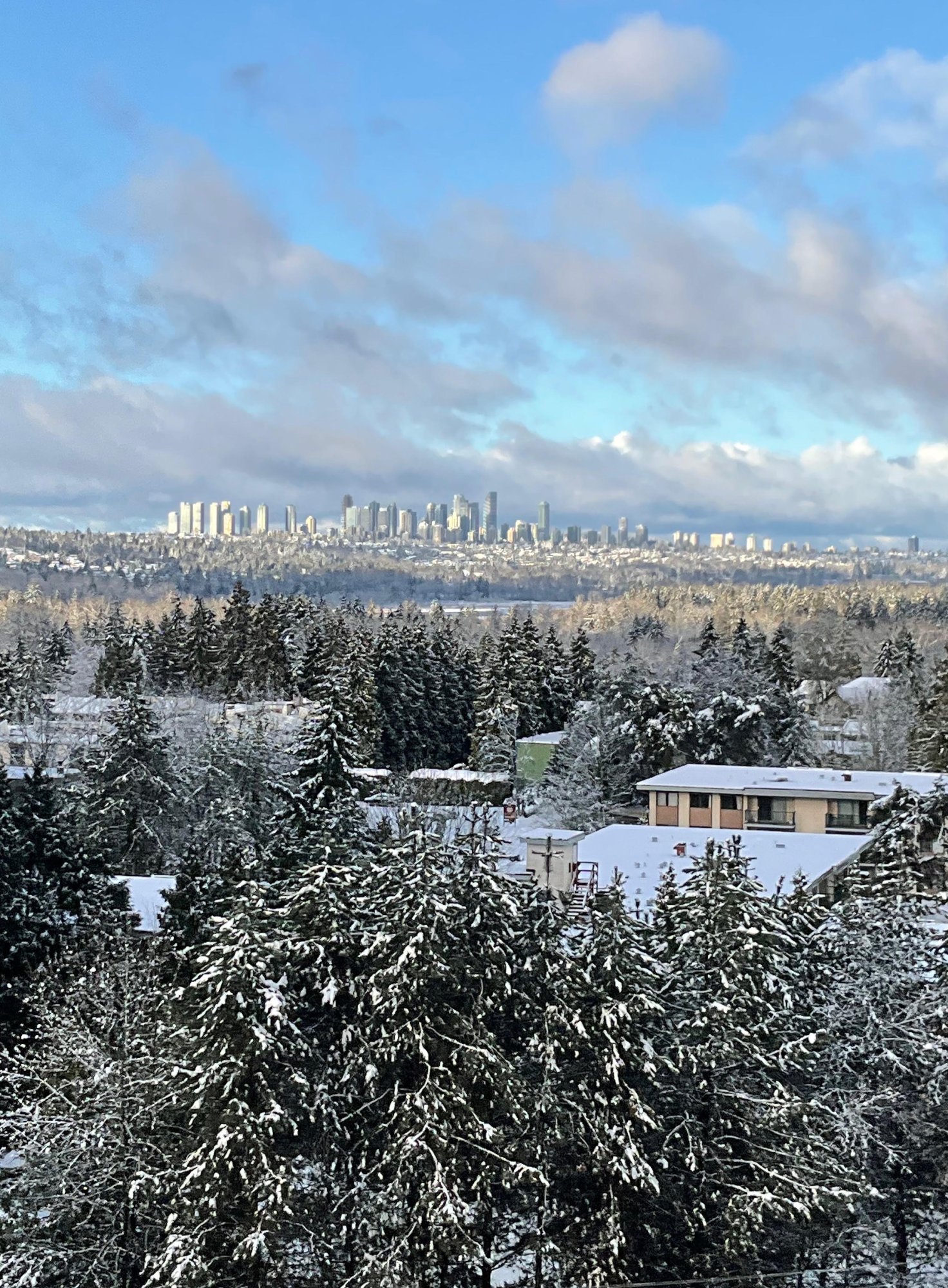 Wow, it's really grown since the last time I was in BC back in 2017.View from the apartment's balcony (yesterday at 8:15 am) ... looking west towards downtown Burnaby ('Metrotown') ... early-morning clearing and sunshine after snow storm overnight.