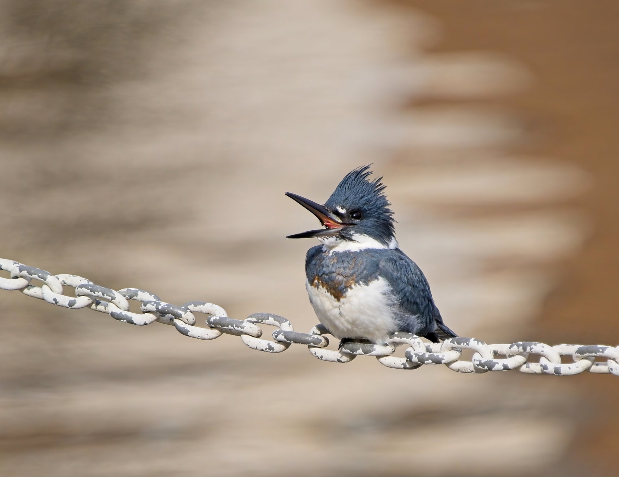 I don't know but he sure seemed happy! If he were vocalizing I couldn't hear him. What surprised me is how tiny his tongue is. Since he does have a small and narrow beak, though, probably the short and small tongue makes it easier to manage the fish he catches for his meals.