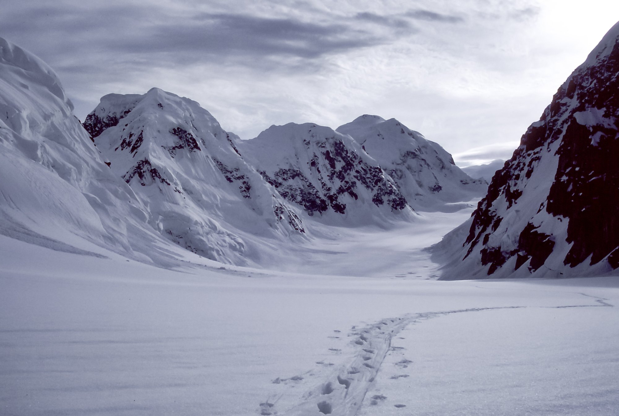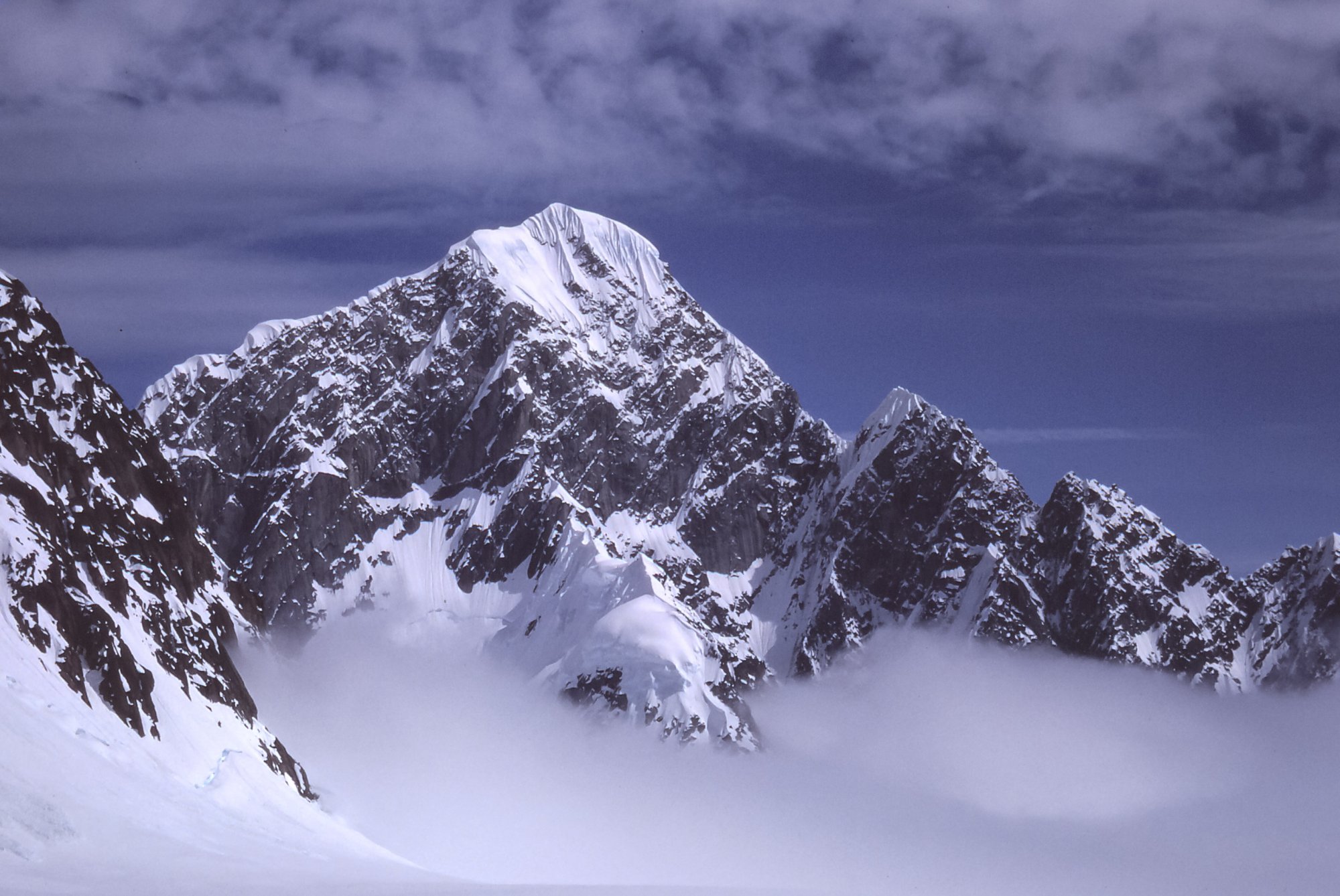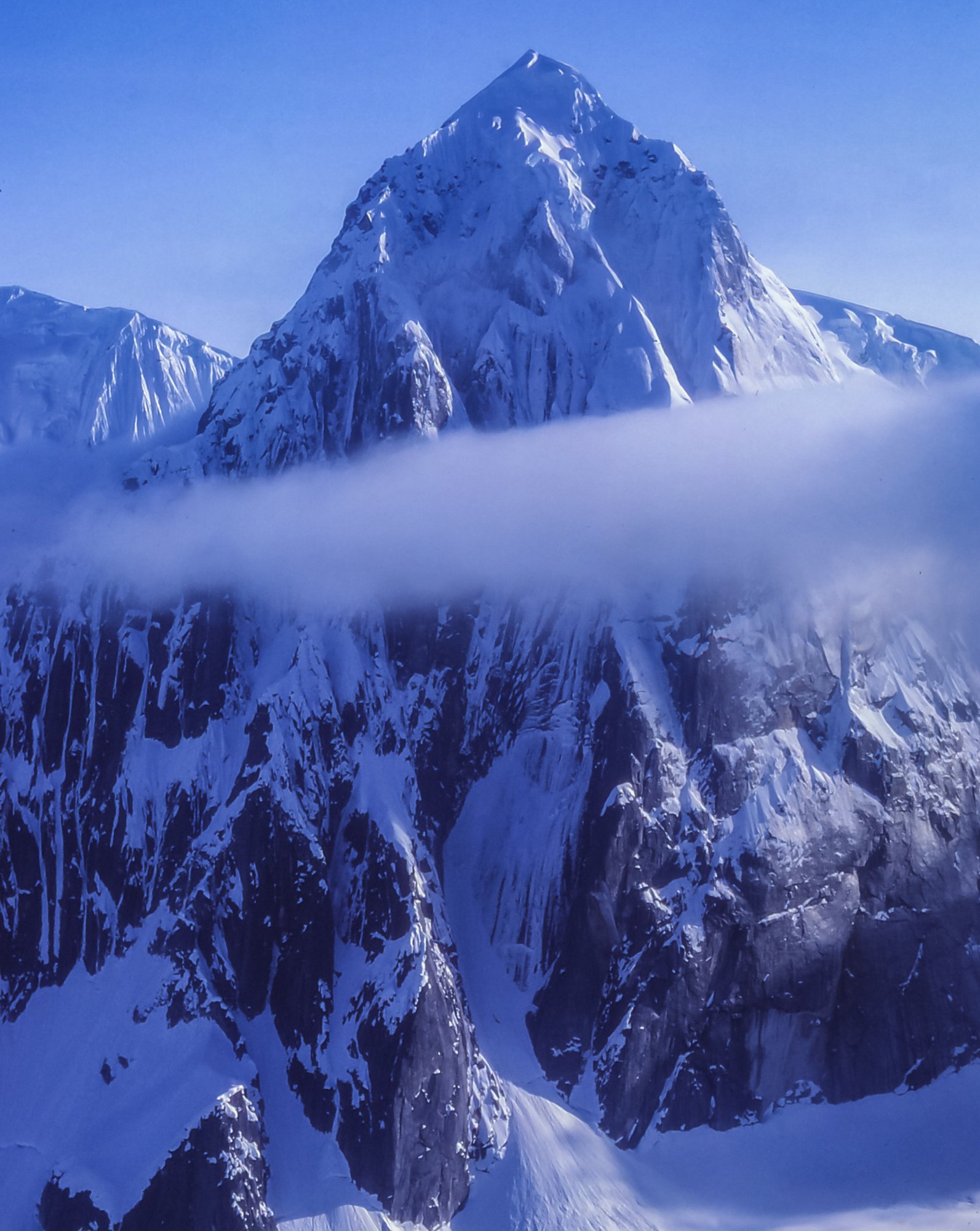 Amazing trip it must have been. Wonderful slides.It's a slide scan from 1980. A buddy and I were attempting one of the first alpine-style ascents of the West Face of Mt. Huntington by a new route. We were in there for 32 days, got very high but were weathered off short of the summit. The picture is actually of me, taken by my buddy with mt camera. The first ascent of the original route was made famous by Dave Roberts in his book, The Mountain of My Fear. I got married 3 weeks after my return (wedding was predicated on our survival).