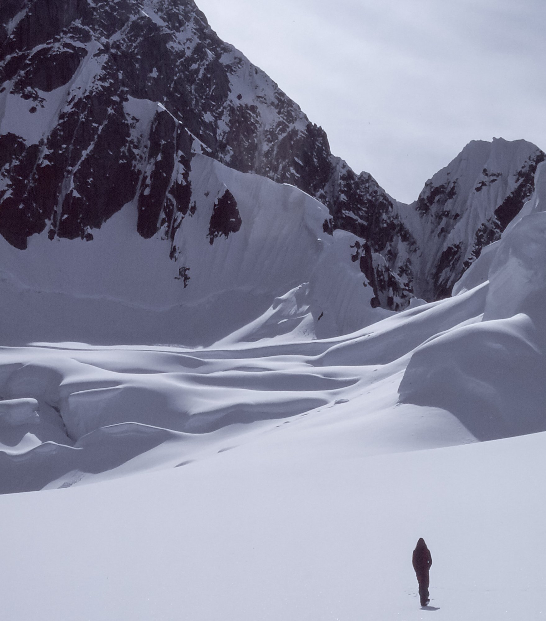 It's a slide scan from 1980. A buddy and I were attempting one of the first alpine-style ascents of the West Face of Mt. Huntington by a new route. We were in there for 32 days, got very high but were weathered off short of the summit. The picture is actually of me, taken by my buddy with my camera. The first ascent of the original route was made famous by Dave Roberts in his book, The Mountain of My Fear. I got married 3 weeks after my return (wedding was predicated on our survival).