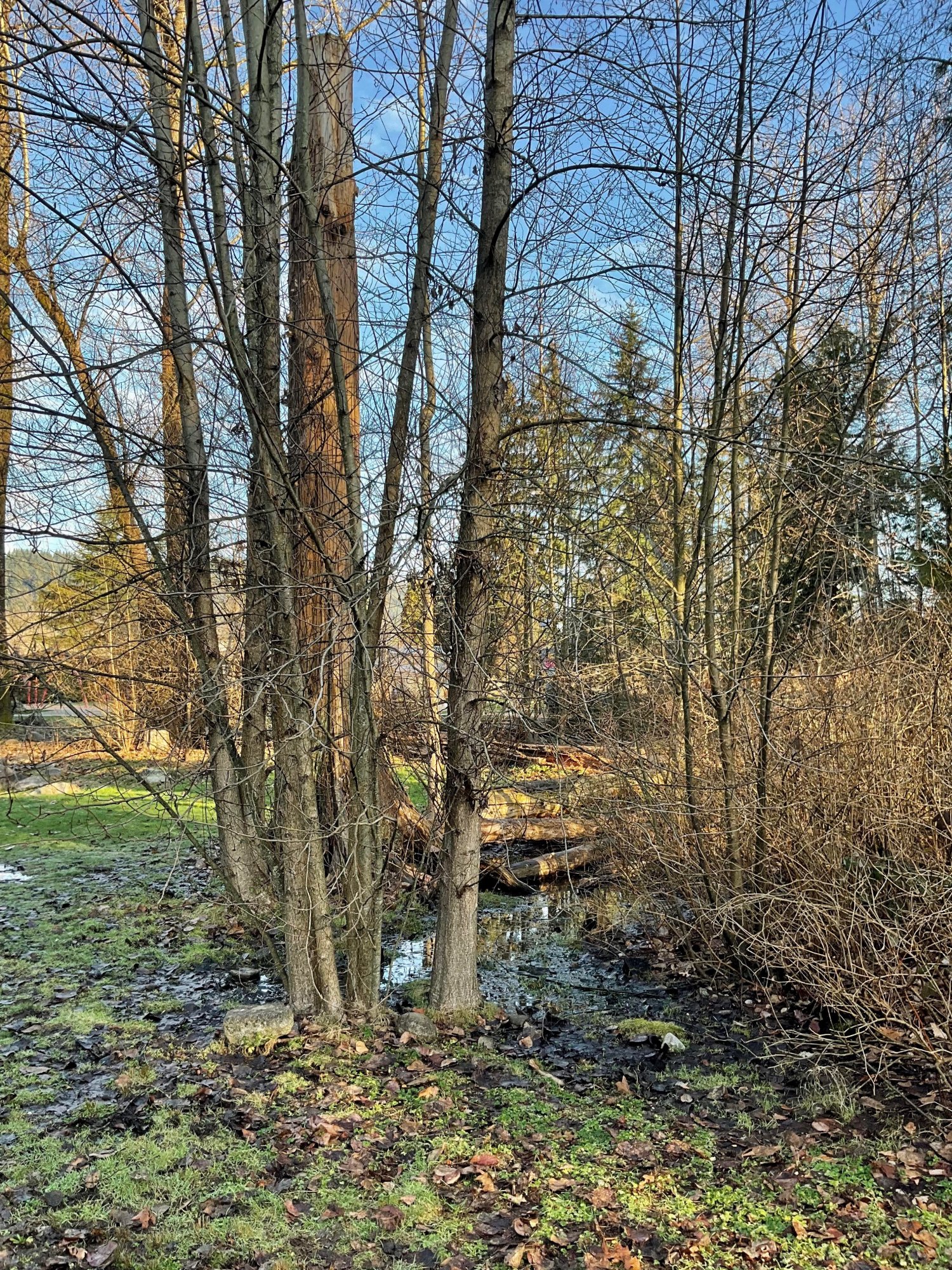 This looks so close to the back left corner of my NY property, water would occasionally collect and drain into neighbors pond. My corner was just beyond the tree line... another view from my early-morning walk through a local Municipal park yesterday.