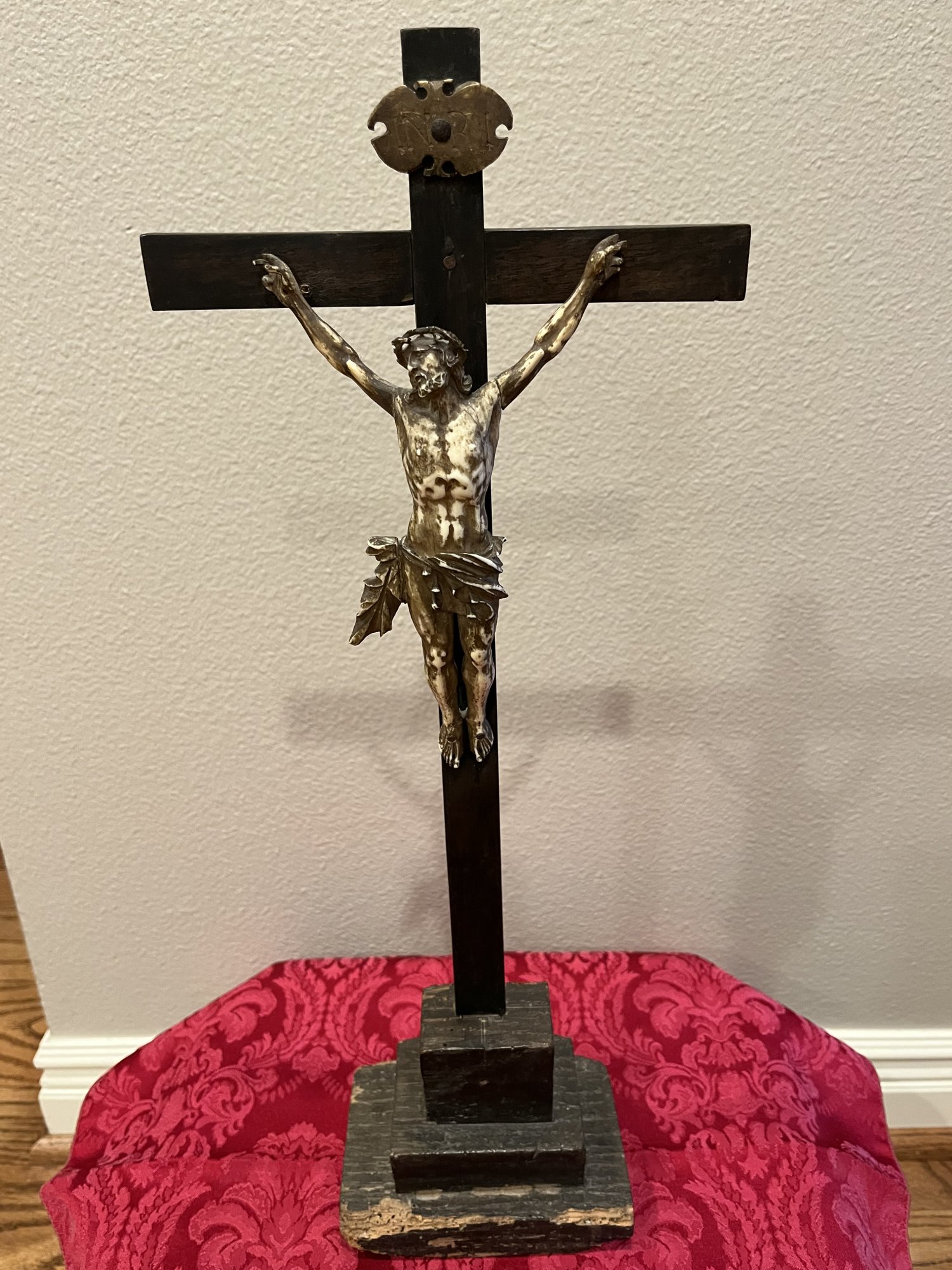 Approximately 1919, my wife’s grandmother was working with the French Red Cross as a 19-year-old volunteer in the catholic church which was being used as a hospital, just short of the German line in the village of Bruyeres, as the Germans advanced on the village she had to evacuate, she took this crucifix from the church and took it back to France. Her grandmother married an American solder and they moved to the US. When she passed, the crucifix was given to my wife, who protected it for some 25 years. My wife decided the crucifix, that dates from 1700 should be repatriated to the village of Bruyeres and the church that it was taken from. This was accomplished in 2023 and is now residing back in the village.